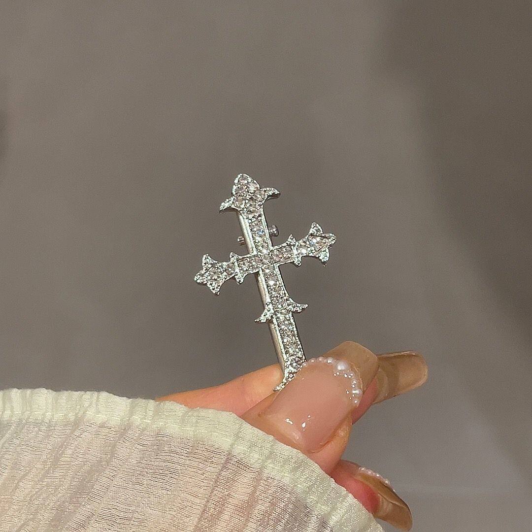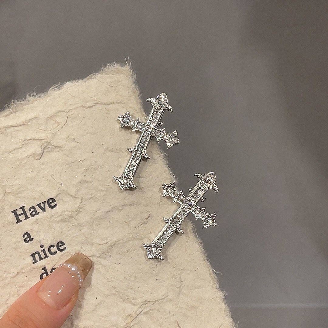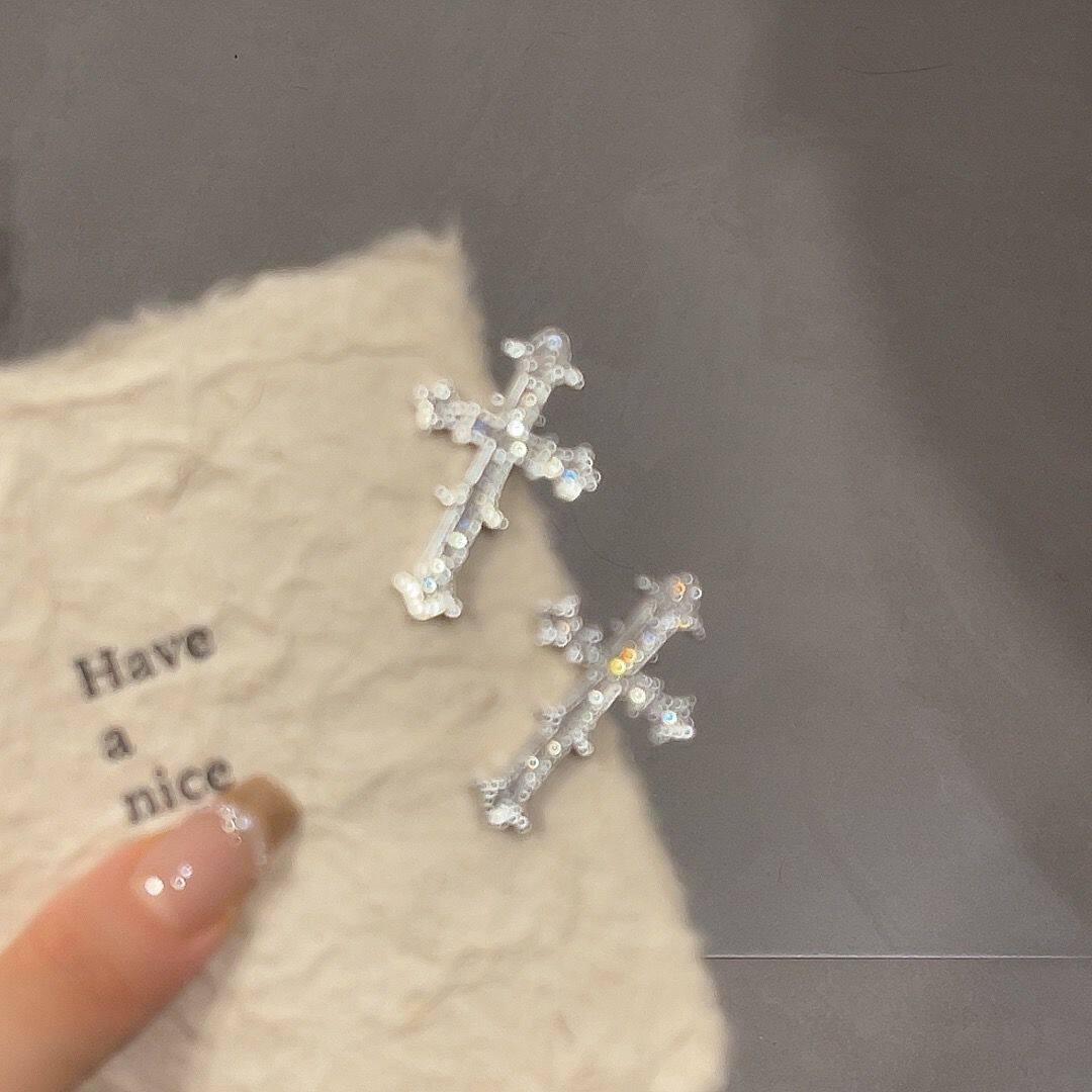 📚 甜酷辣妹十字金属闪钻高级感鸭嘴发夹爆款发卡侧边刘海夹高颜值