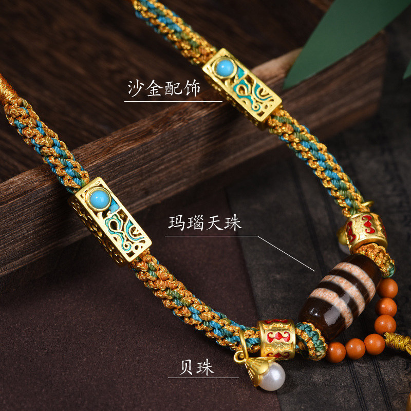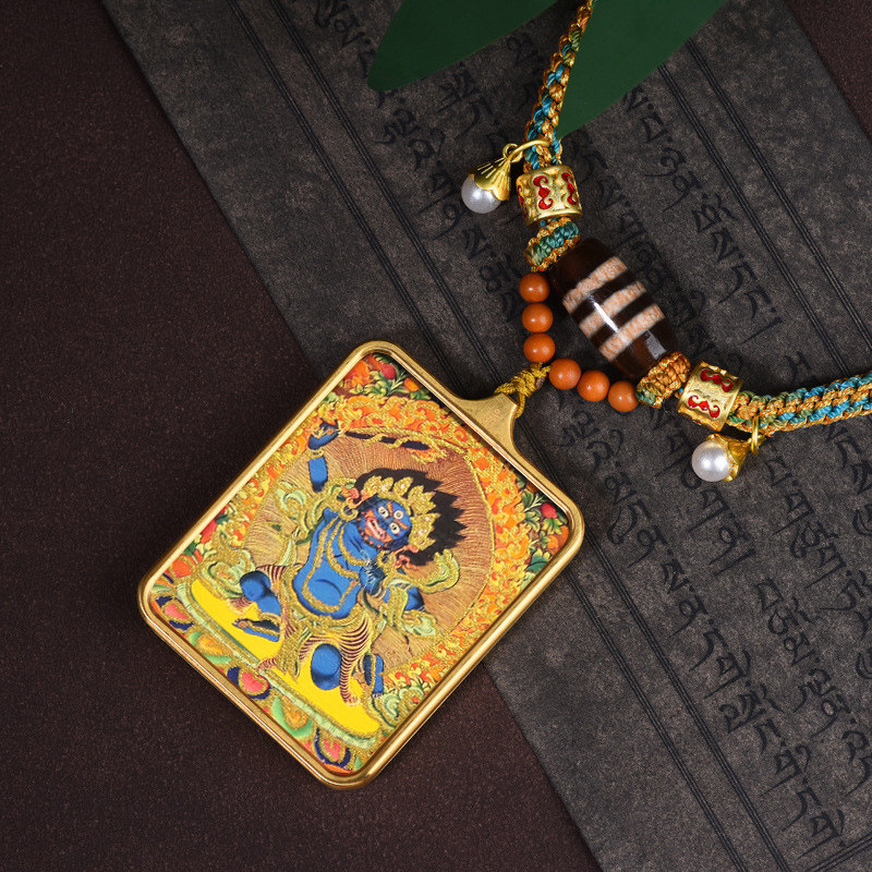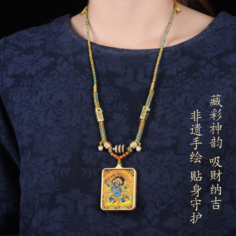 📚 手工编织藏式天珠挂绳手绘唐卡吊坠绳扎基拉姆黑财神复古招财