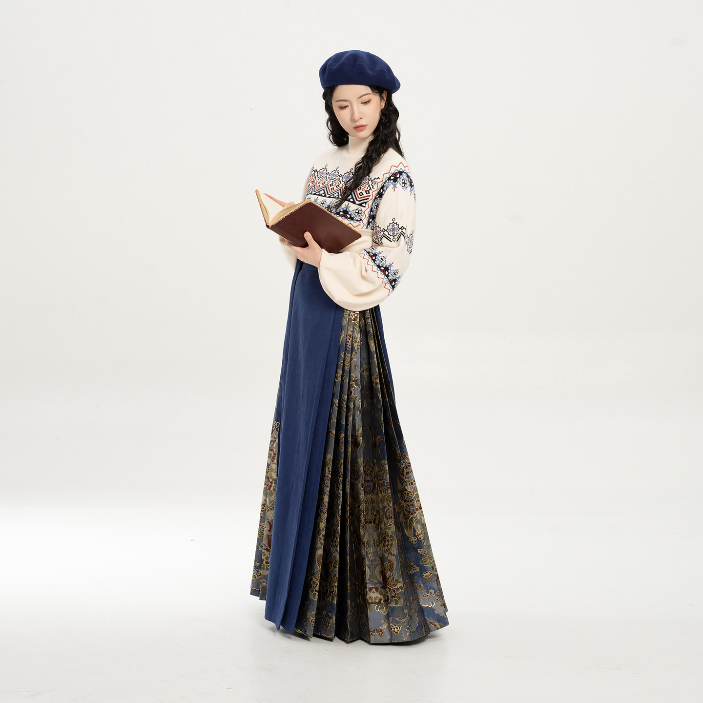 📚 织造司×敦煌当代美术馆联名[琵琶乐]半高领毛衣马面裙半身裙套装