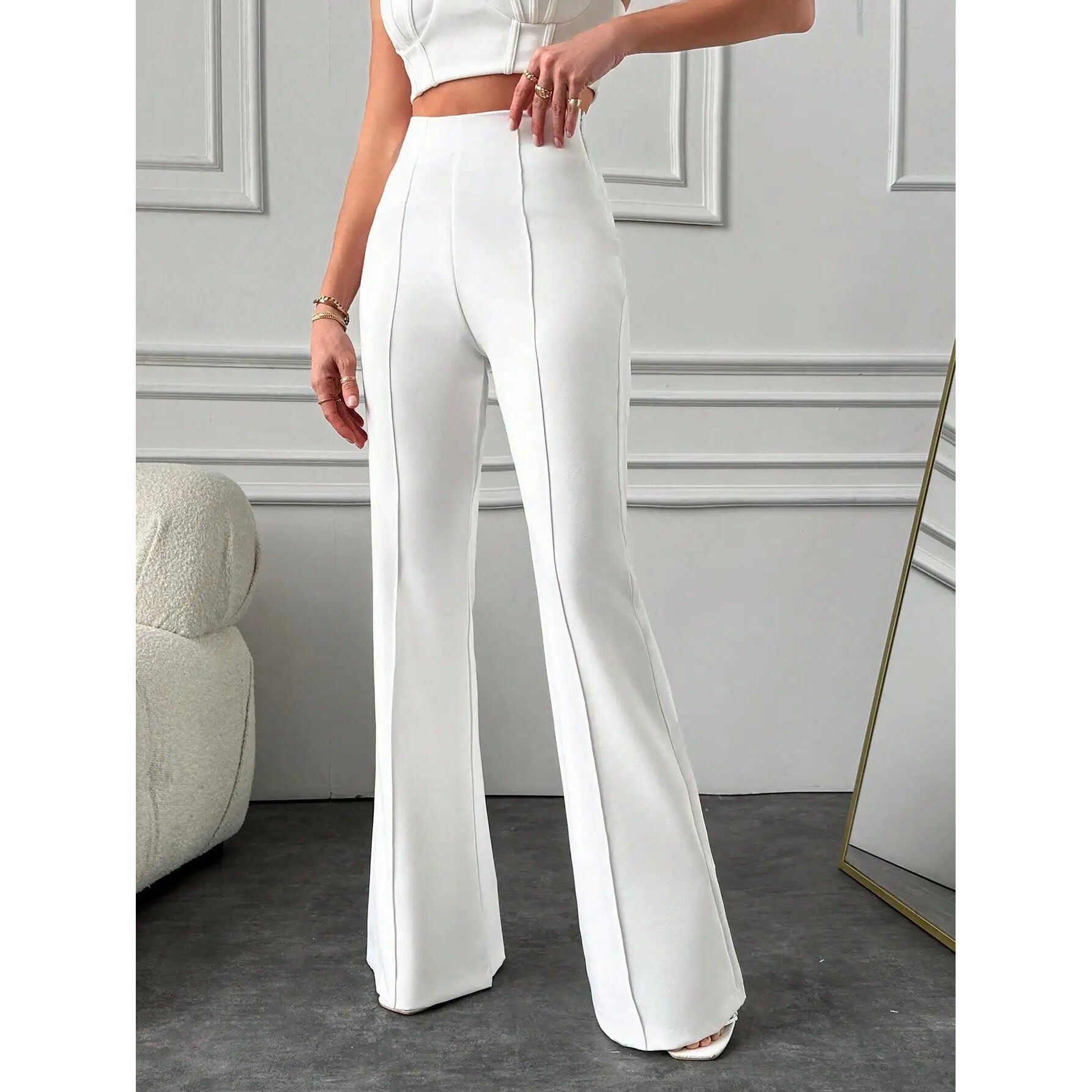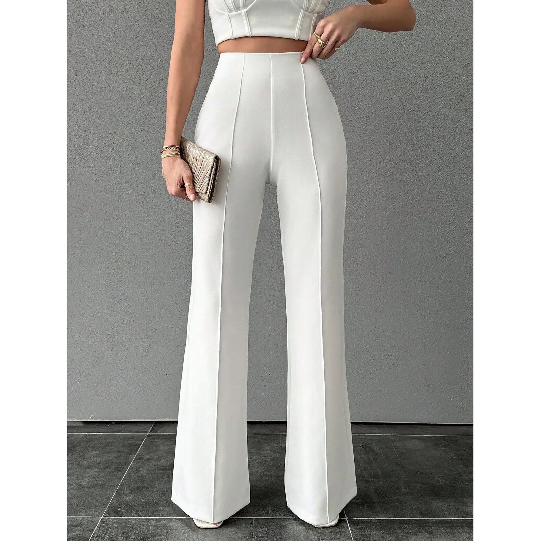 📚 纯色拼接阔腿微喇裤女 Solid Color Patchwork Micro Flare Pants