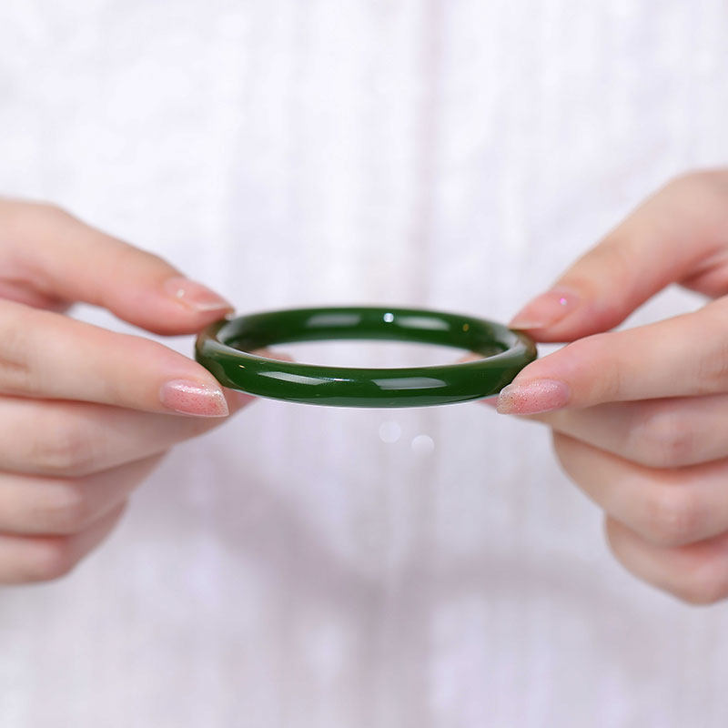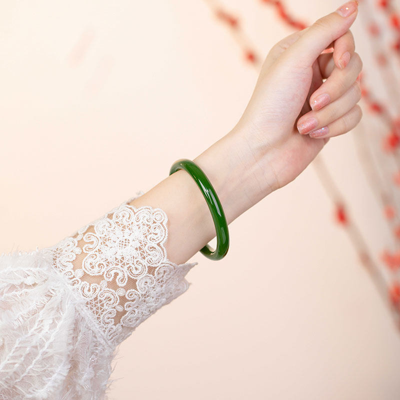 📚 和田玉手镯女款圆条菠菜绿碧玉少女年轻款青海料晴水美人条玉镯子