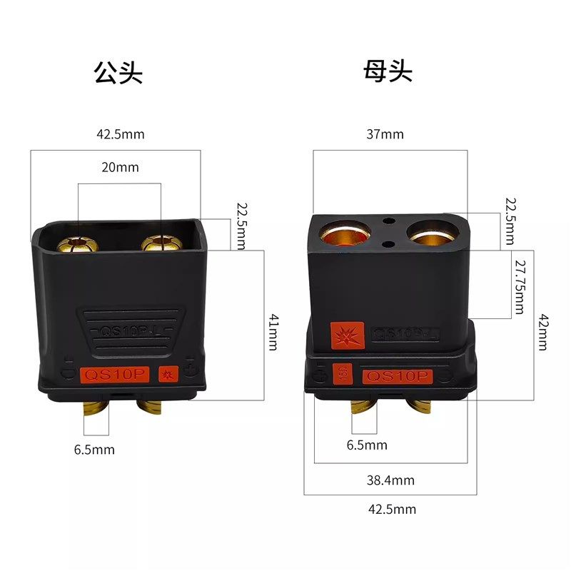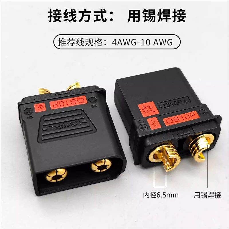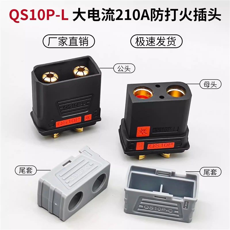📚 两极210A大电流QS10PL防打火插头无人机锂电池电电源充电连接器