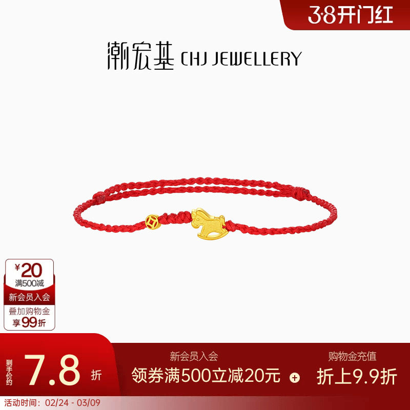 📚 潮宏基好事发生黄金手链足金手绳手饰生肖马骐骥红绳本命年 计价