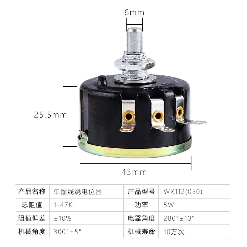 📚 WX112电位器 功率5W 星火单圈线绕电位器 100欧 1K 4K7 10K 47K