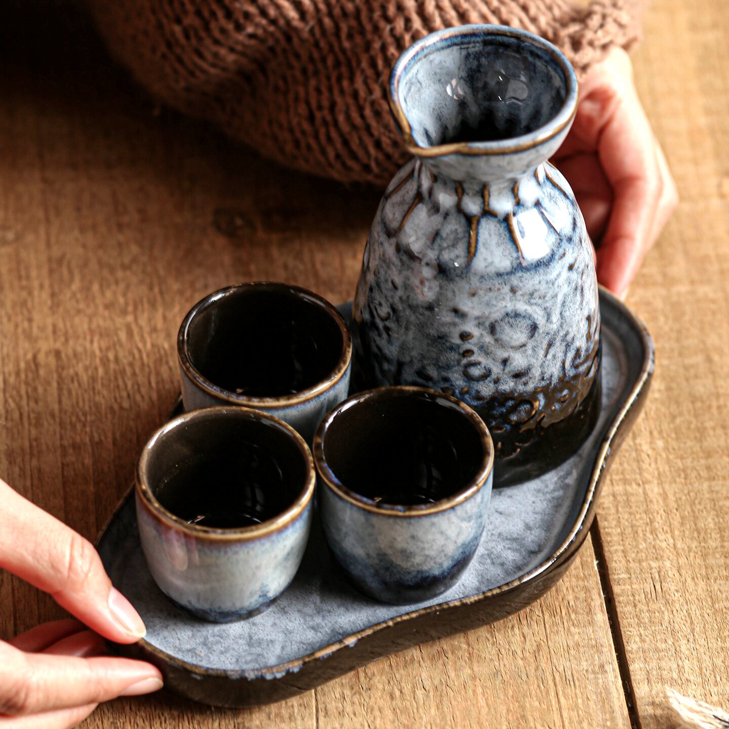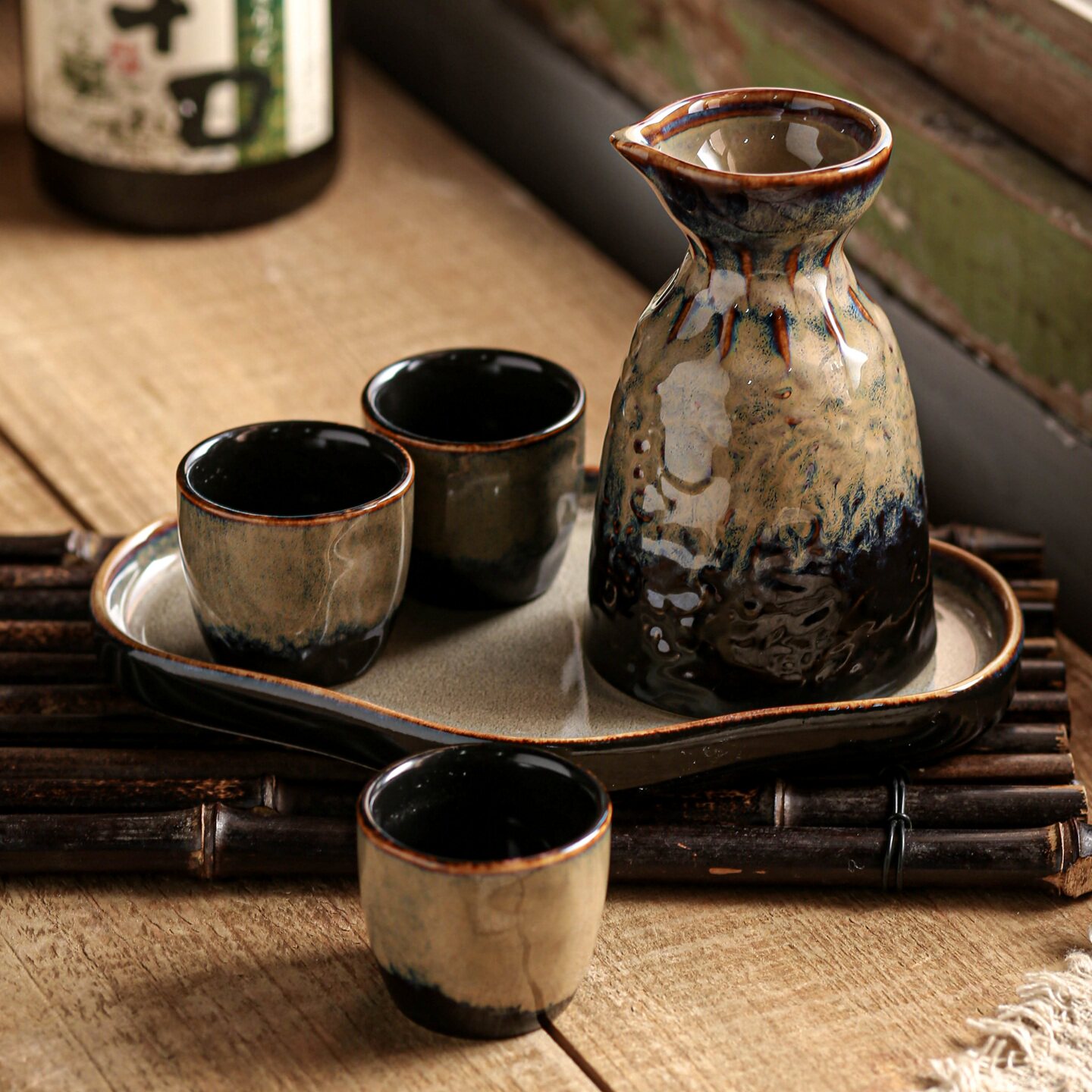 📚 分酒器酒杯套装复古酒瓶一壶三杯烫酒壶家用酒杯白酒二两陶瓷酒具