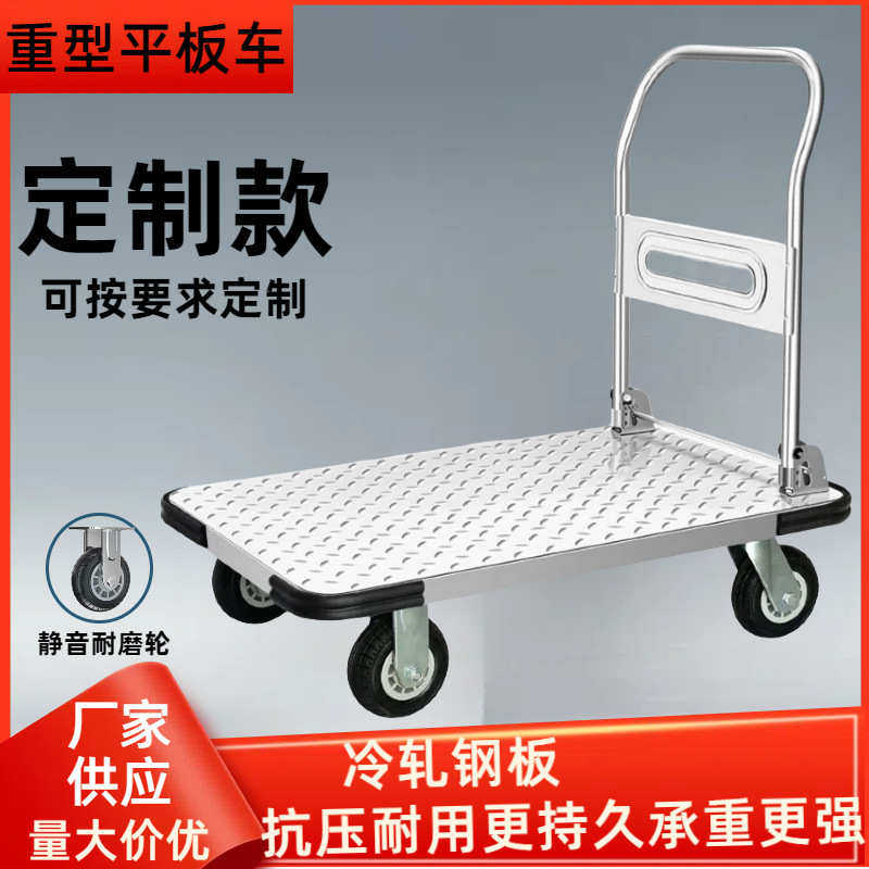 💥"加工定制钢板拖车小推车,静音平板车拉货工具车,折叠手仓库搬运车,券后价110!💖"