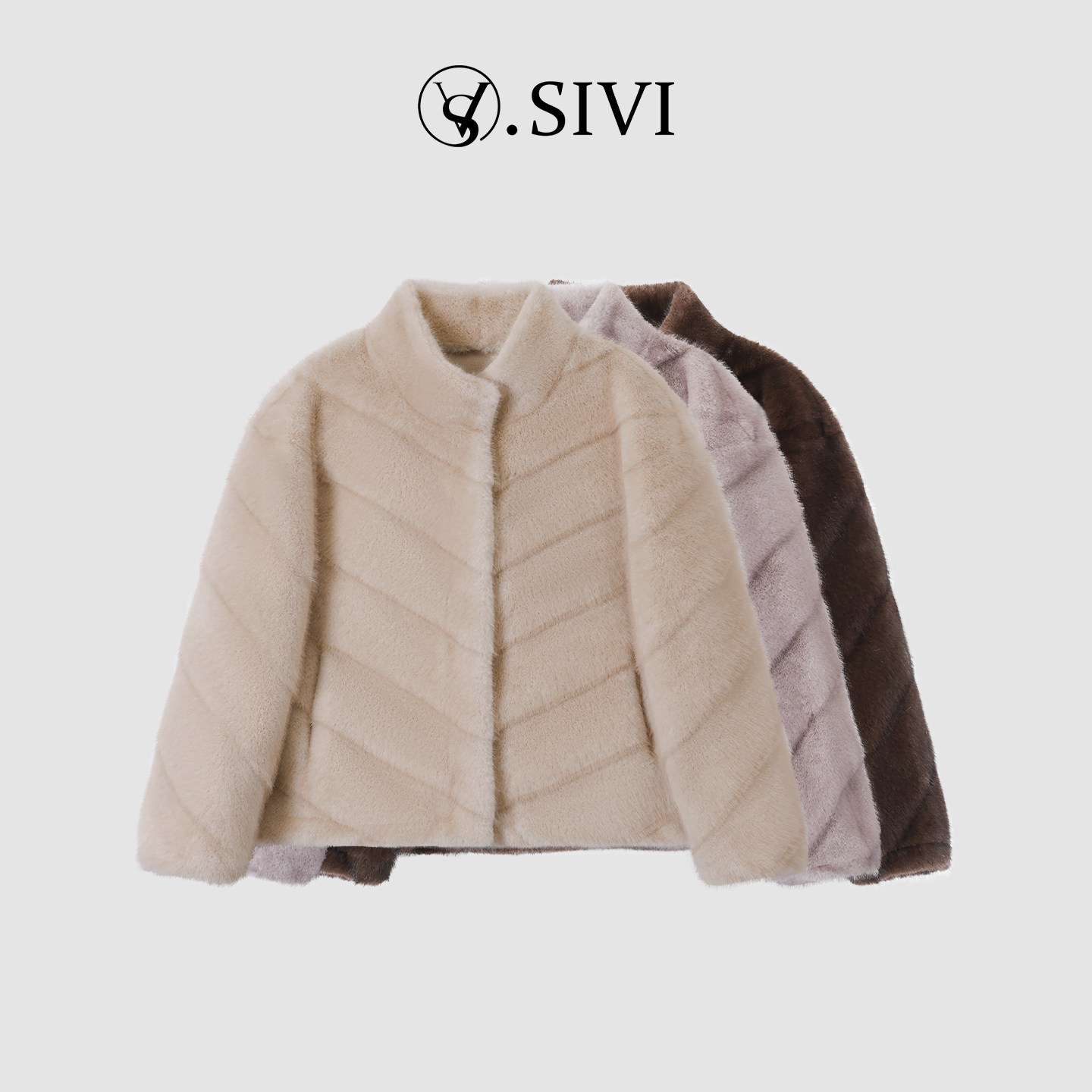 📚 熙薇sivi环保软仿水貂绒毛外套女立领加厚皮毛一体皮草大衣毛绒
