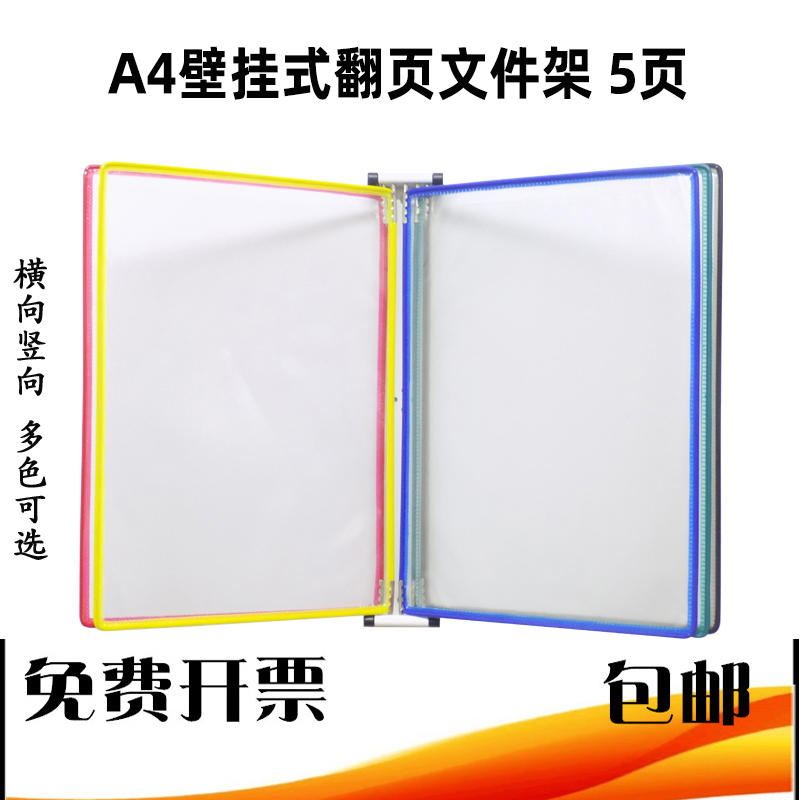 📚 壁挂式5页A4翻页资料架挂墙悬挂式活页透明转轴文件夹页面展示架工字文件架挂壁式工厂车间作业指导书