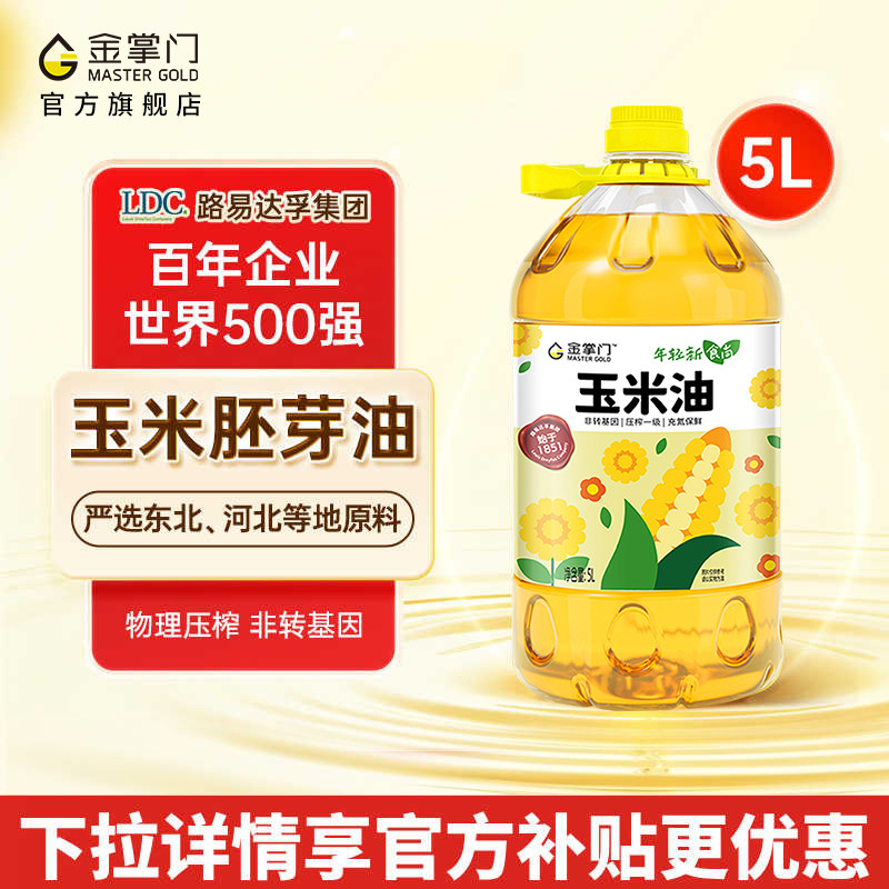 📚 【百补】金掌门非转基因玉米胚芽油5L物理压榨食用油少油烟家用
