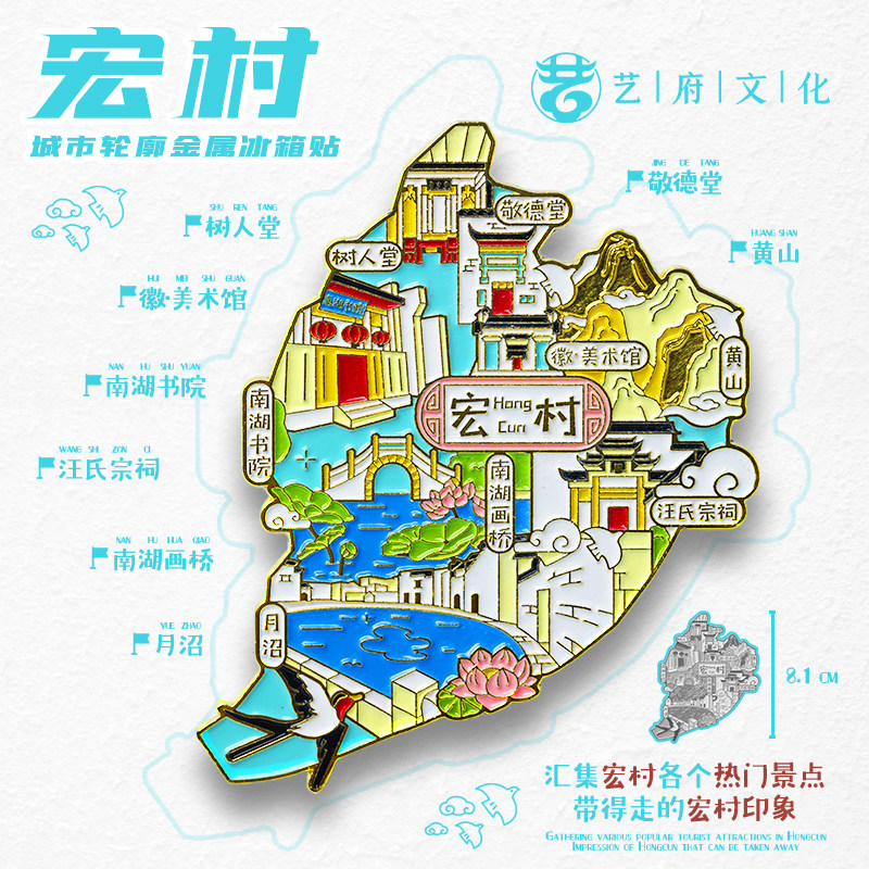 📚 宏村冰箱贴磁贴树人堂南湖书院敬德堂汪氏宗祠南湖画桥月沼徽美术