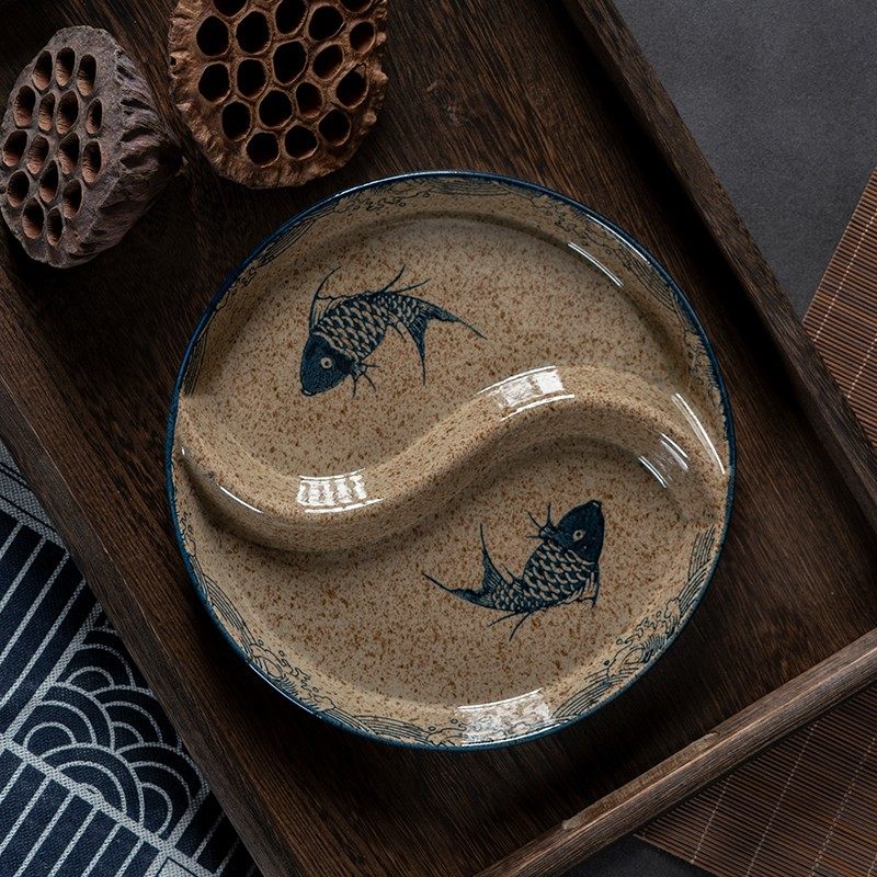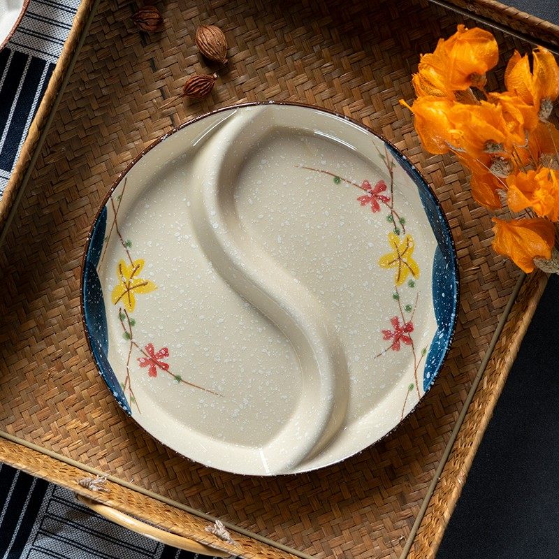 📚 家用碟子两格格二分格菜盘陶瓷太极盘分格盘子餐盘鸳鸯盘碟分隔