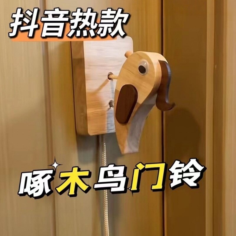 📚 啄木鸟门铃抽象入户门拉拽绳子开门提醒铃铛敲门神器民宿装饰挂件