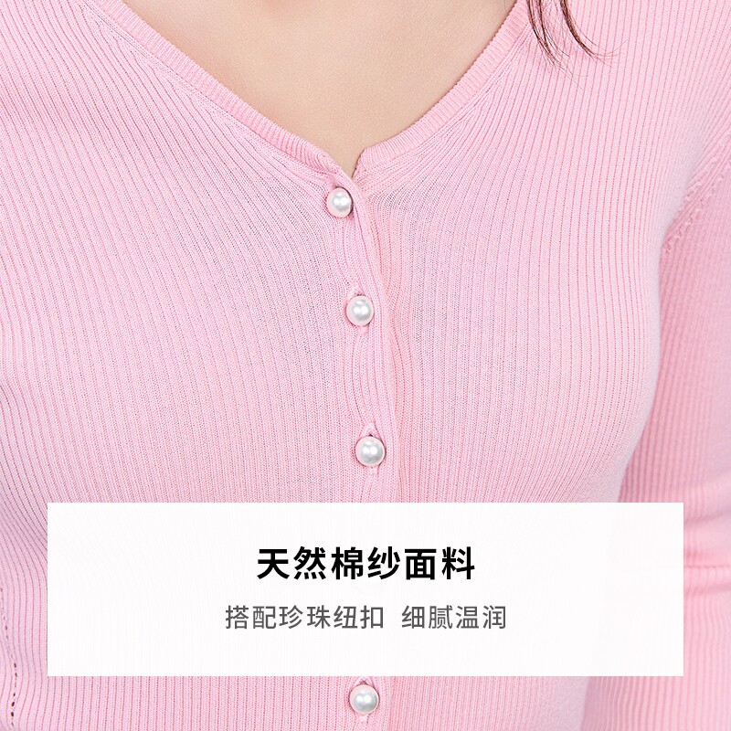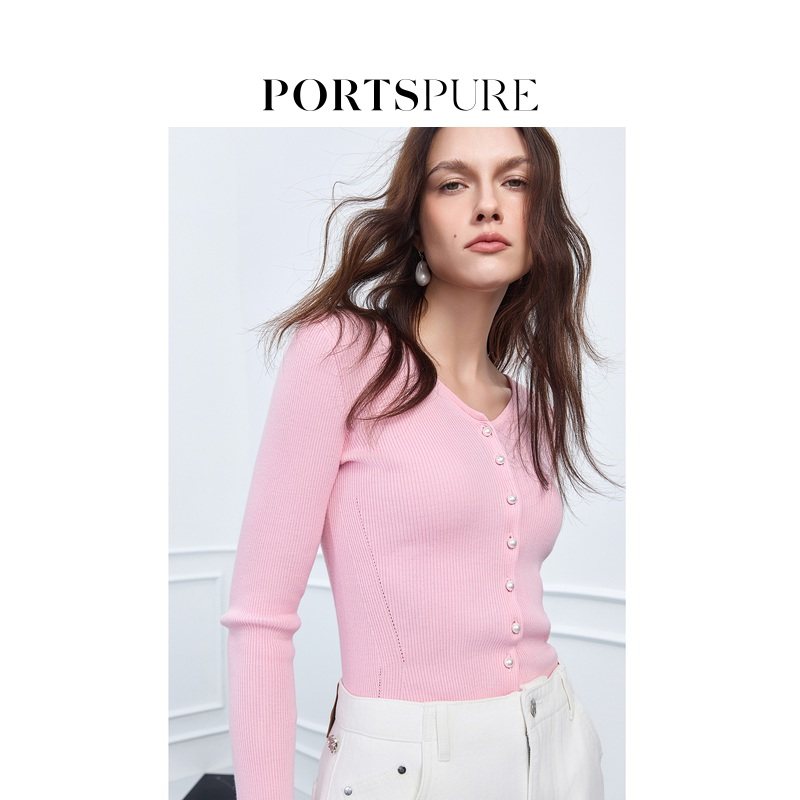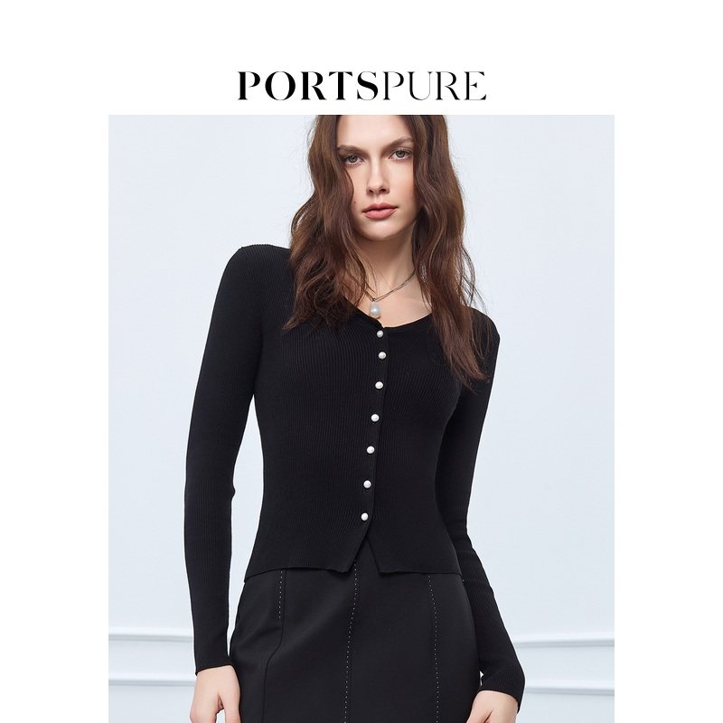 📚 宝姿PORTSPURE女装舒适松弛百搭显瘦V领珍珠扣针织开衫