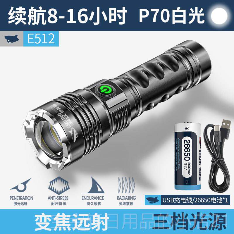 📚 高档手电筒家用电池航户外光超亮远射充电探照灯超长续便携LE小D