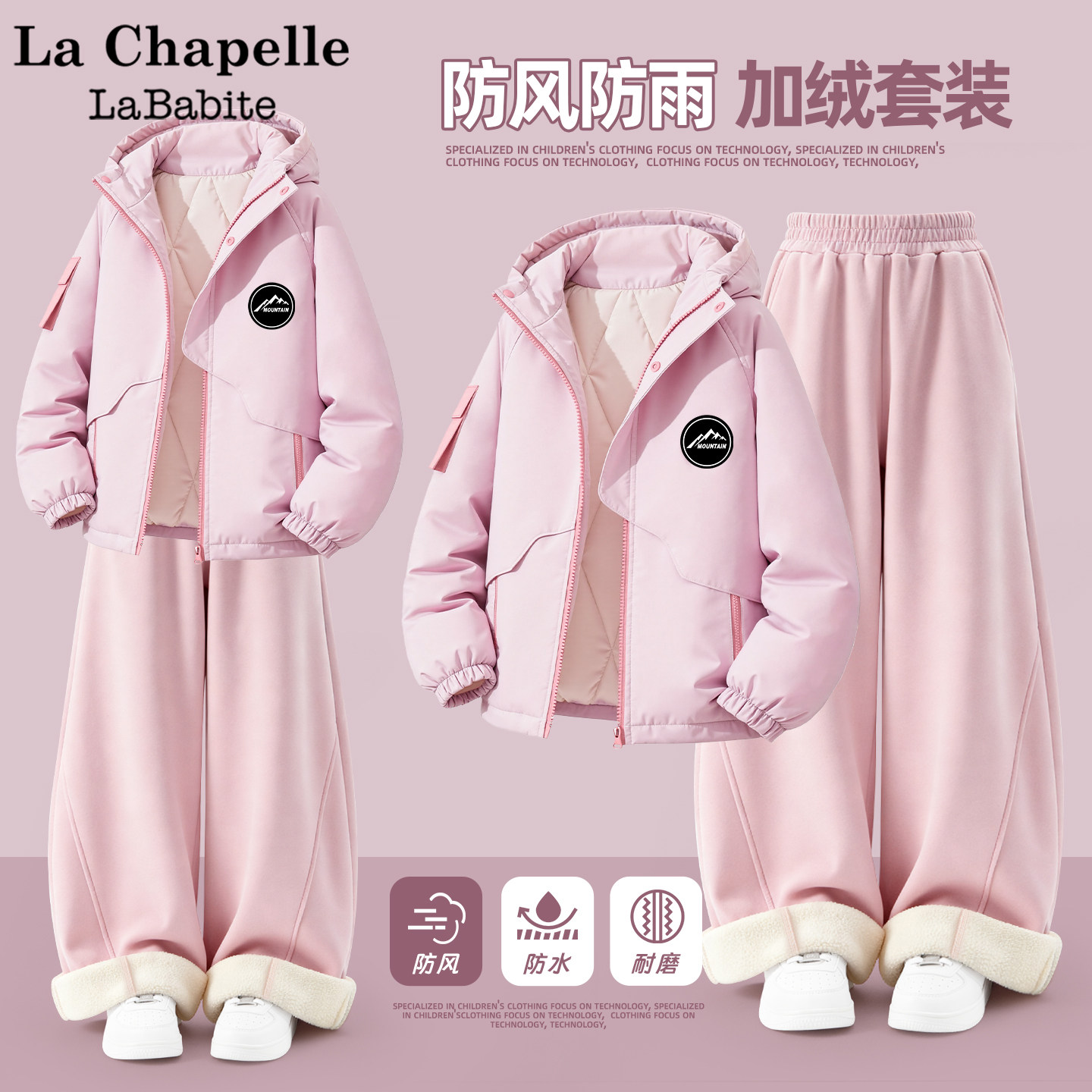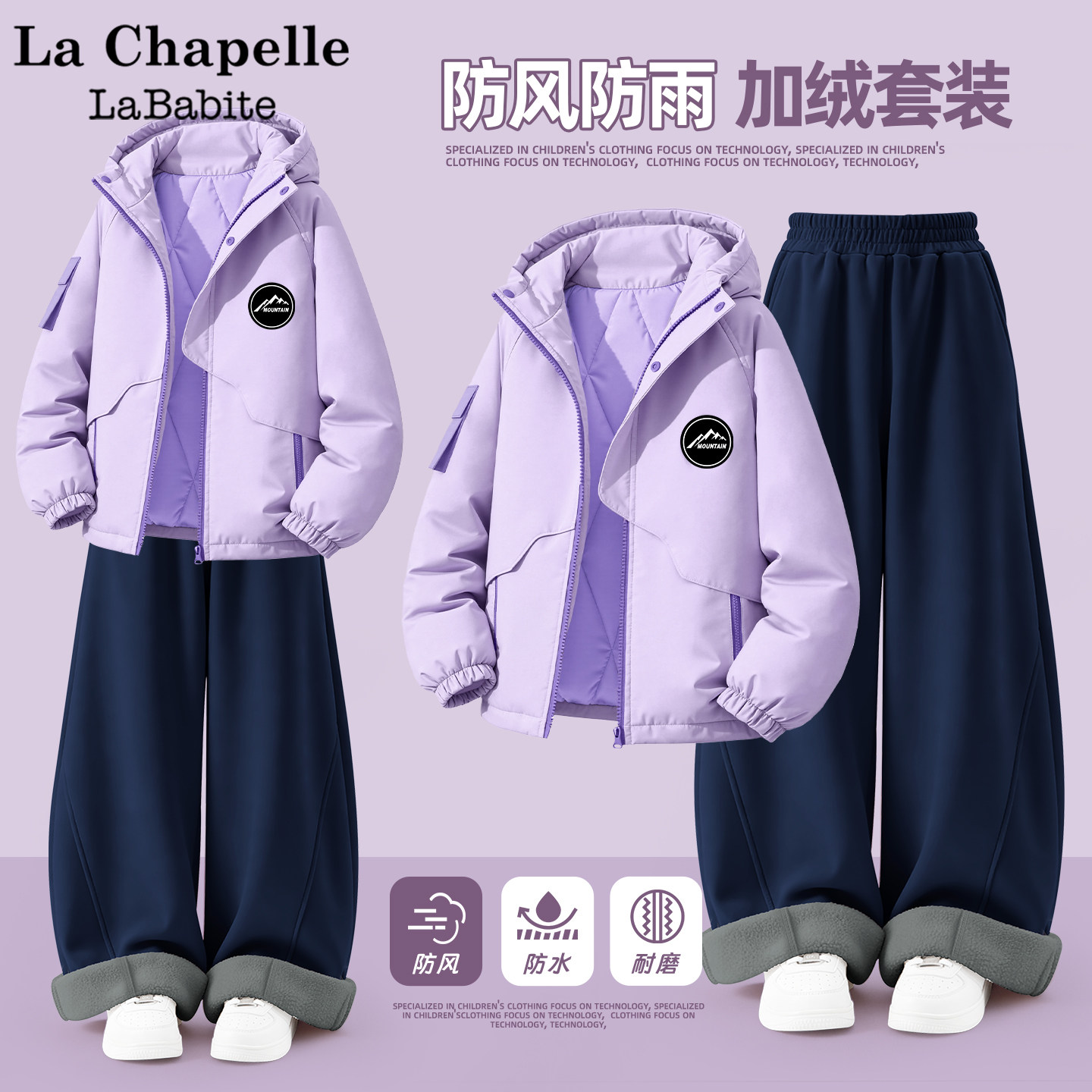 📚 拉夏贝尔男童棉服套装冬加厚外套弯刀裤2026新款校服神器儿童冬装
