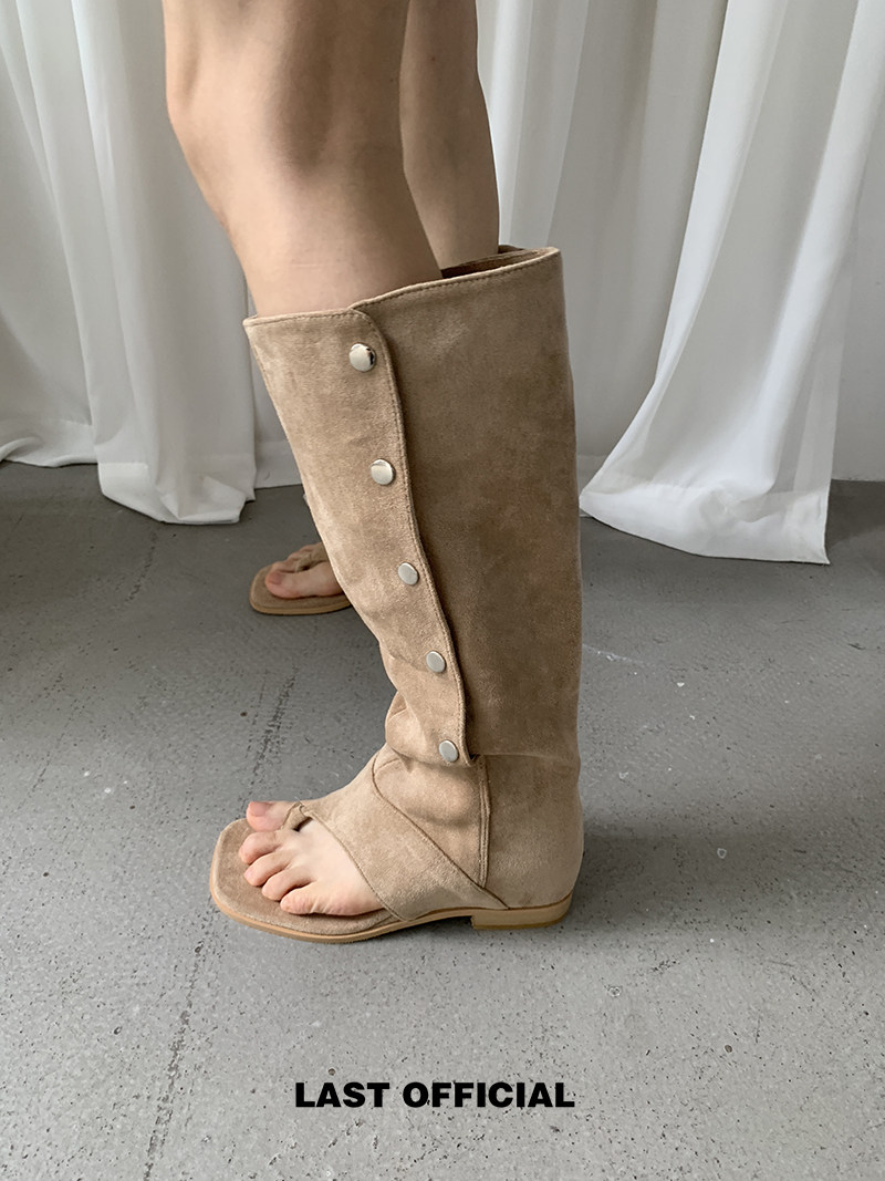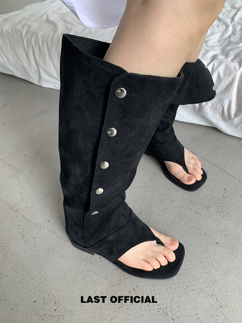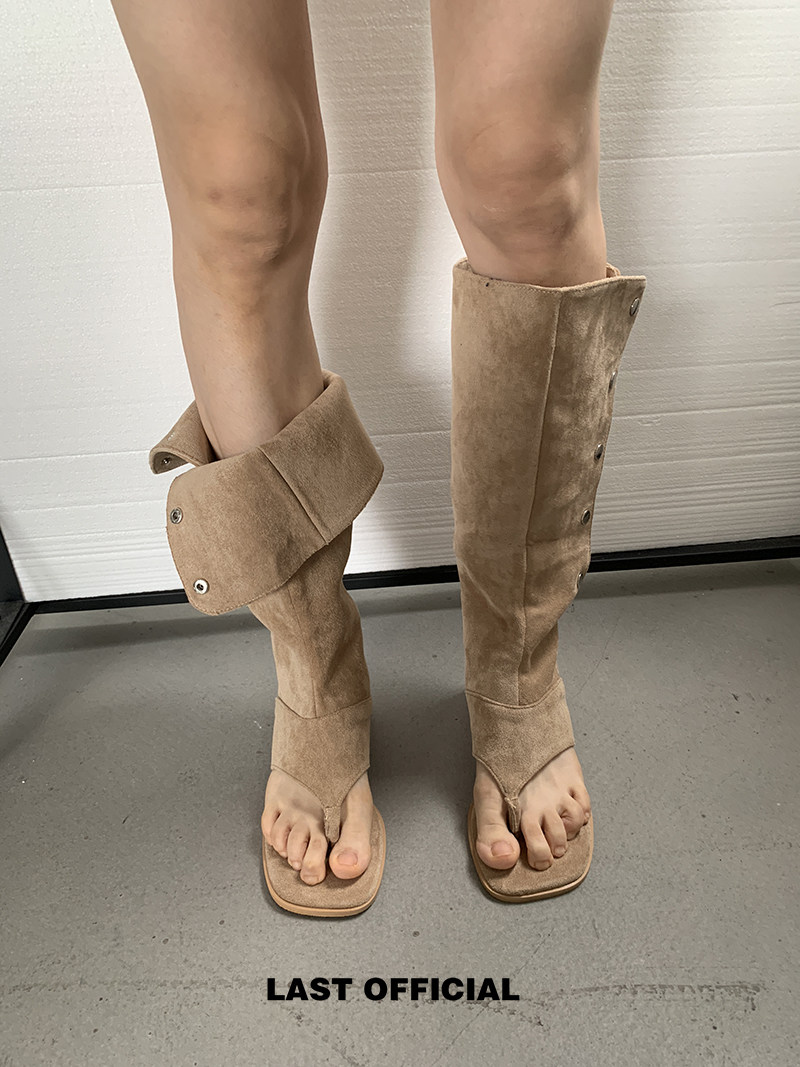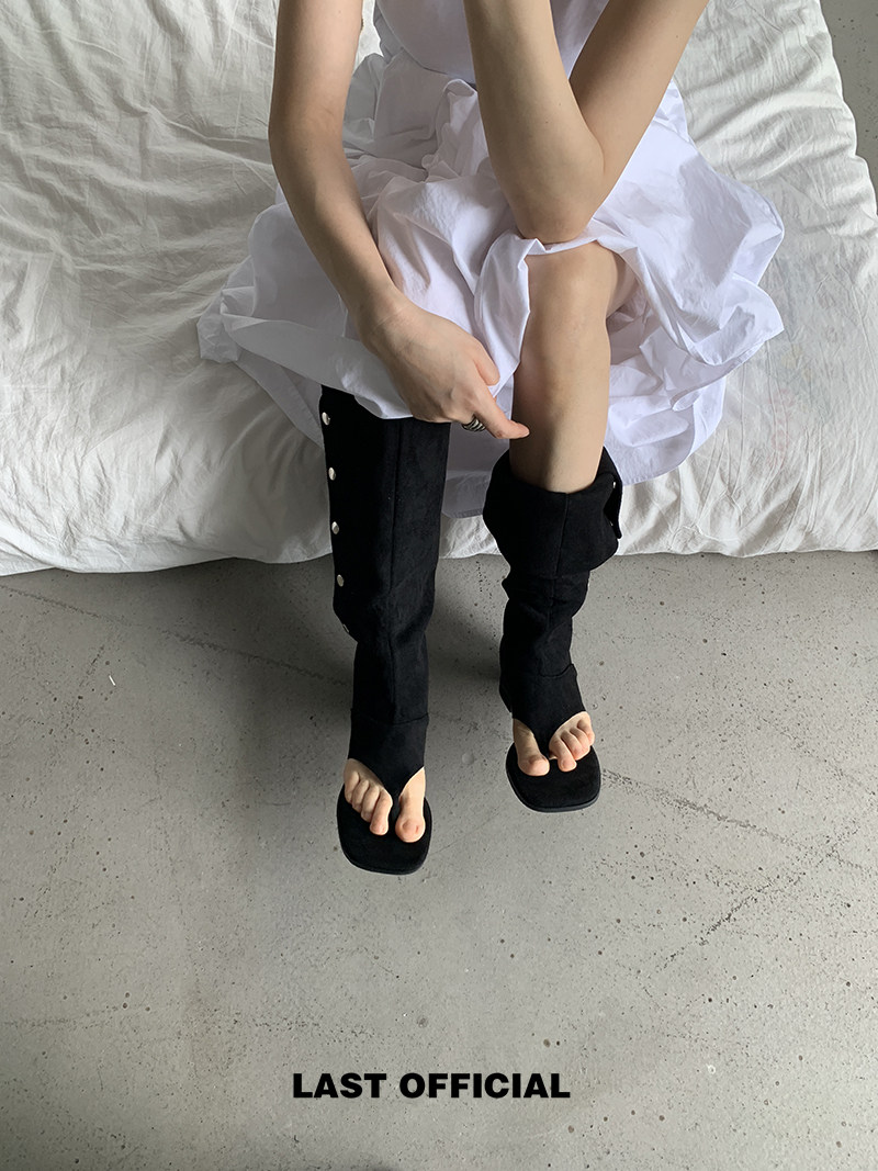 📚 Last Official 夏季新款小众设计磨砂面夹趾西部牛仔裤管凉靴长靴