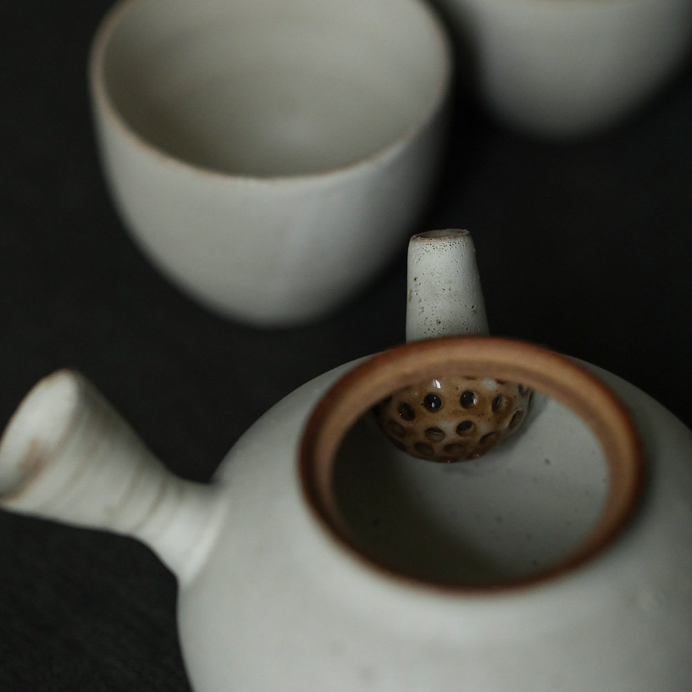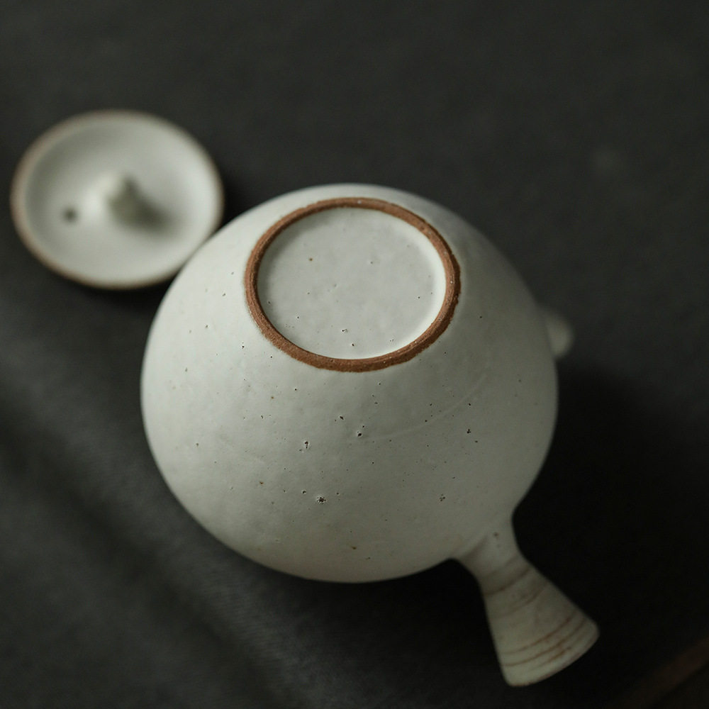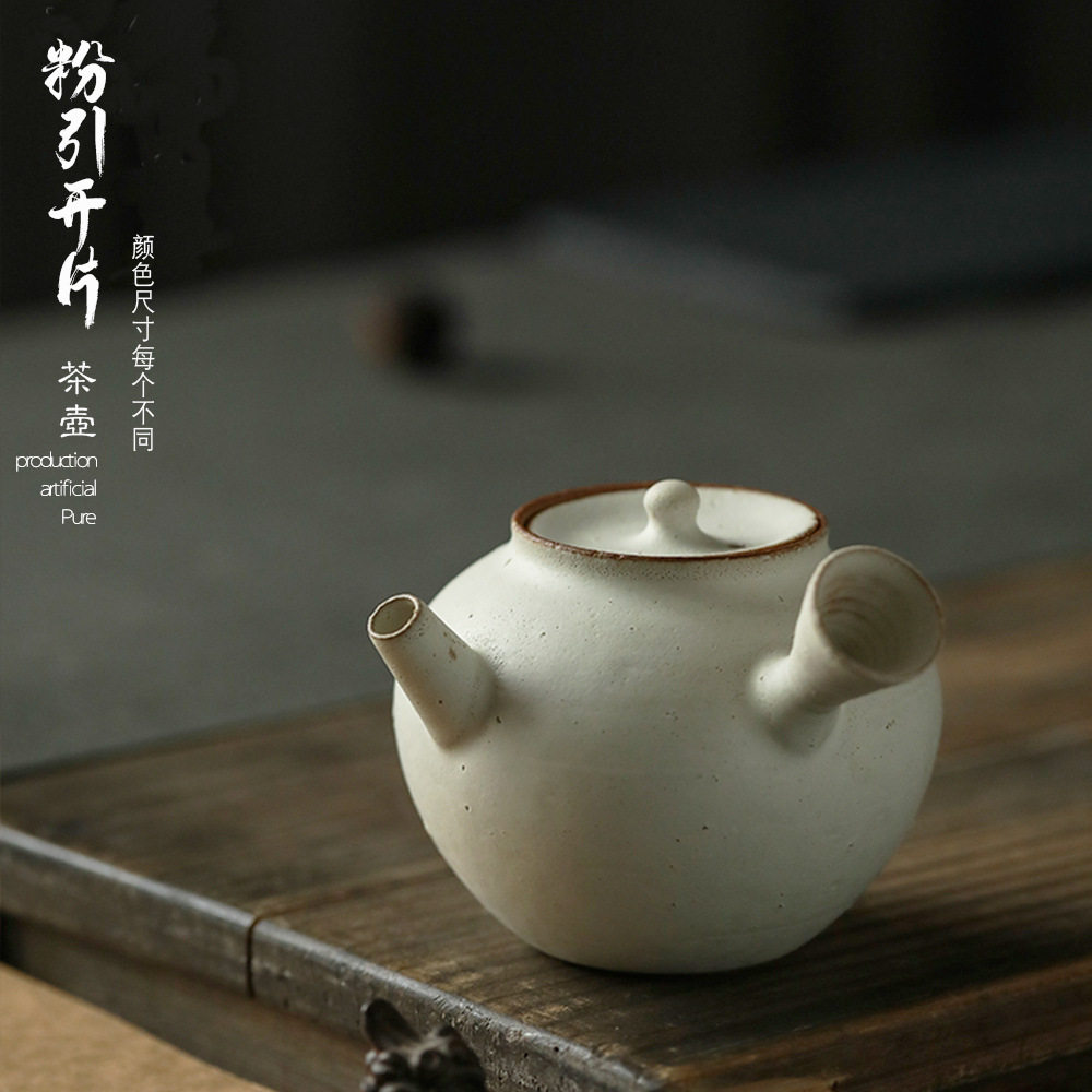 📚 素粉引釉侧把壶茶壶传统器型陶壶球孔工夫泡拟古壶日式古朴侘寂