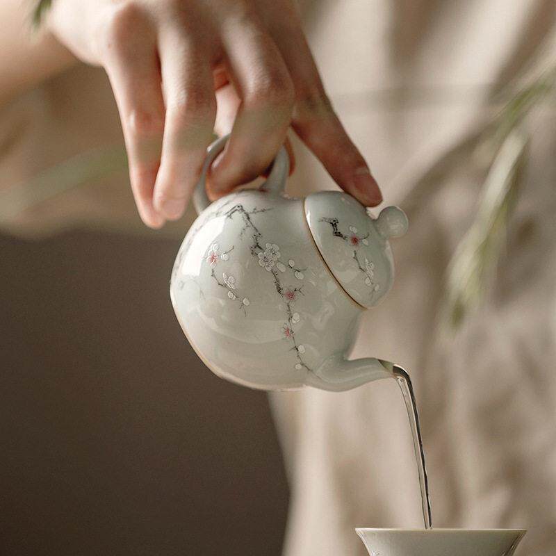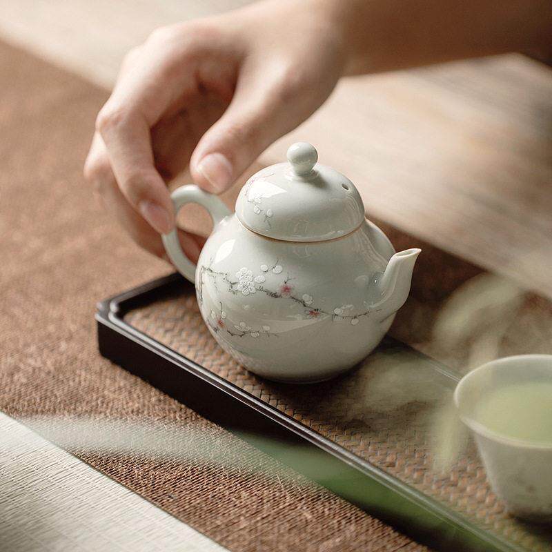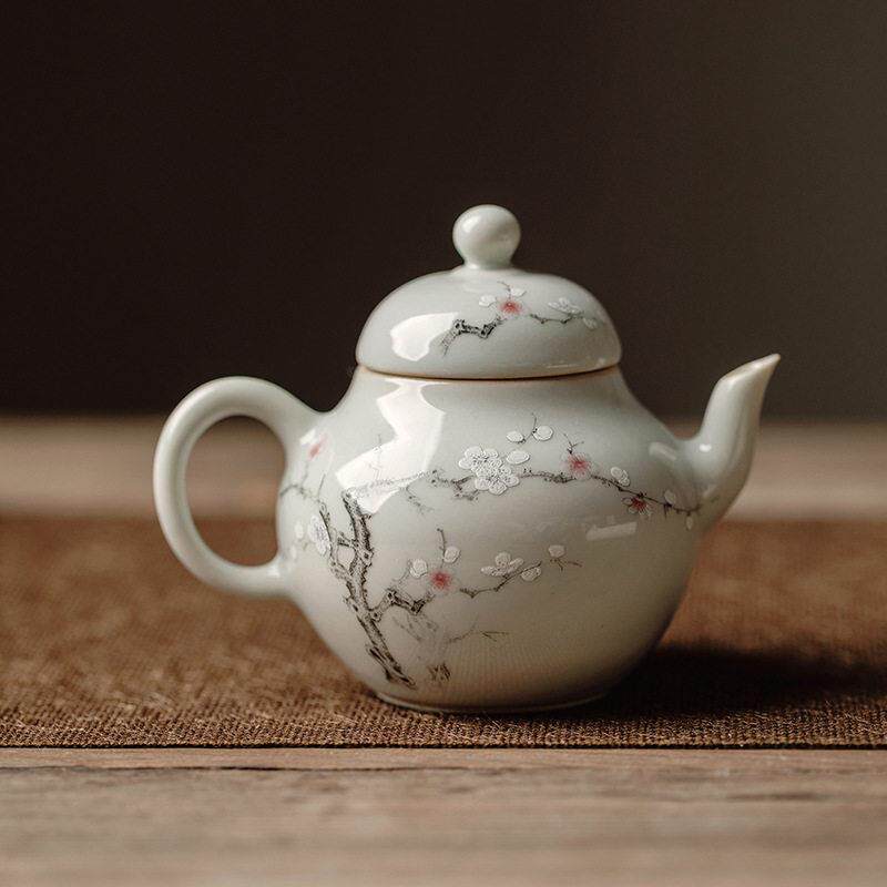 📚 束刻拟古青瓷手工陶瓷茶壶泡茶壶墨梅潘壶单壶带过滤功夫茶具单壶