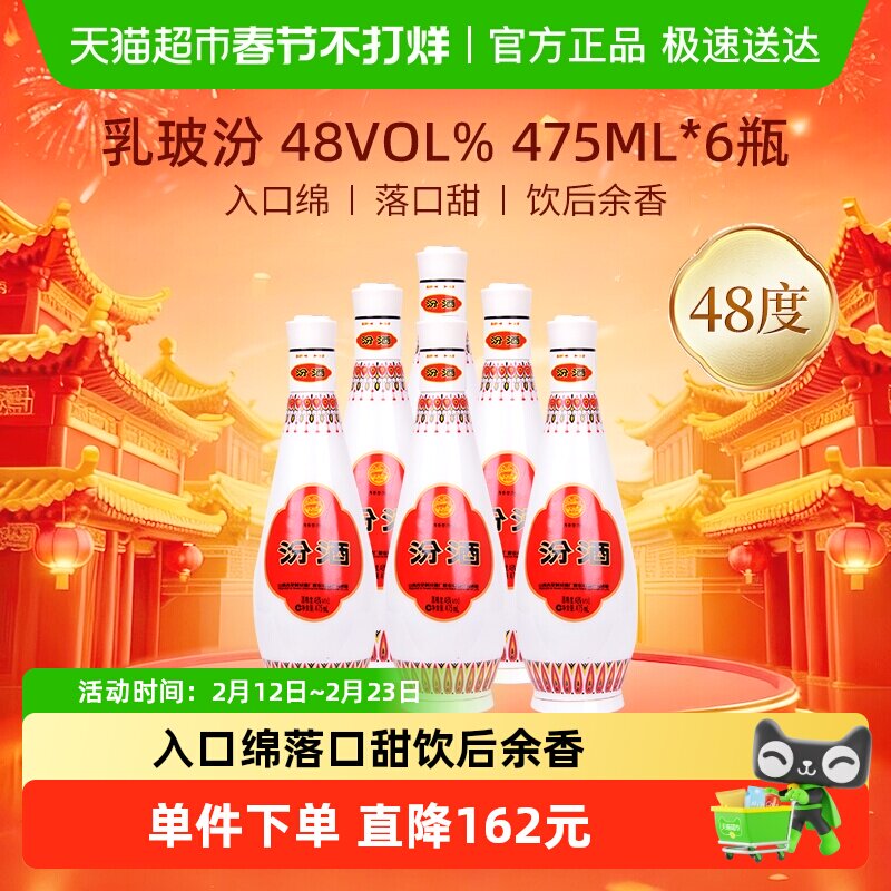 📚 汾酒山西杏花村乳玻汾清香型白酒48度475ml*6瓶纯粮酒非原箱装