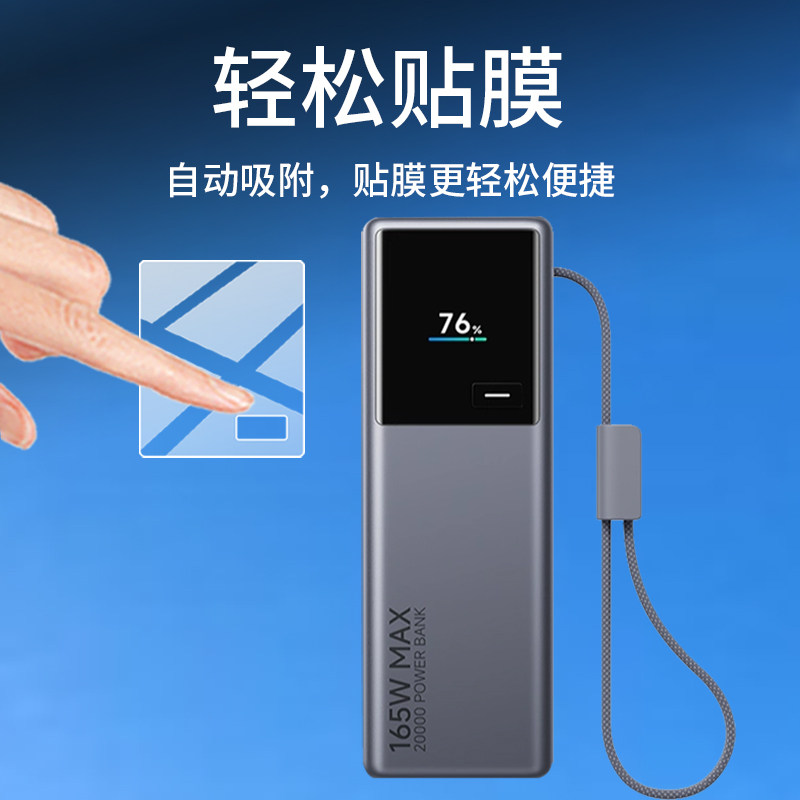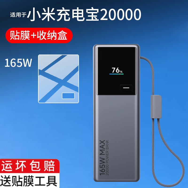 📚 适用于小米自带线充电宝20000充电宝贴膜165W保护膜小米充电宝10000电源屏幕非钢化膜PB2165套PB1165收纳盒壳