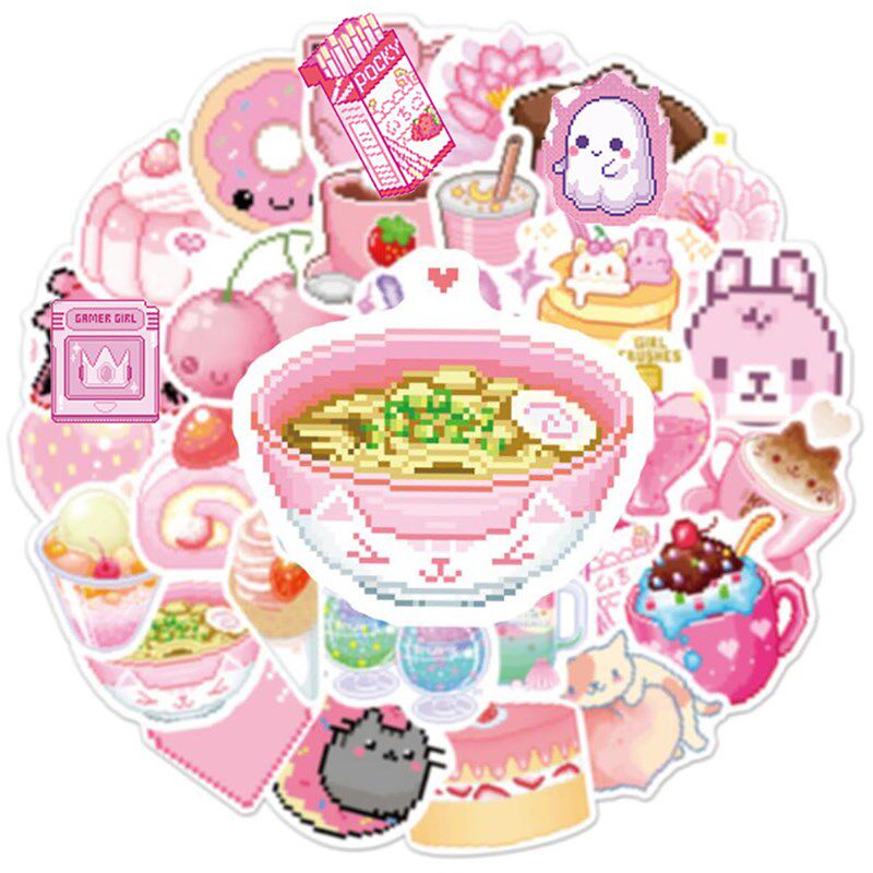 📚 2023New 50PCS INS Style Cute Pink Pixel Cartoon Stickers DIY