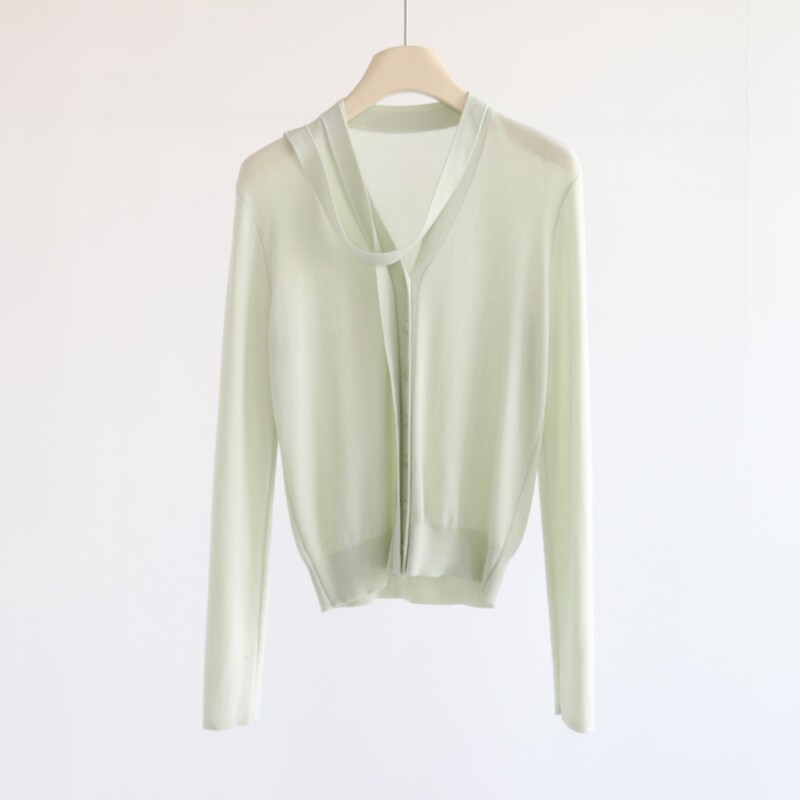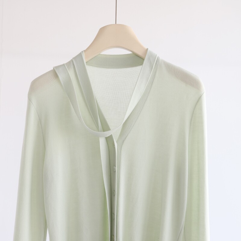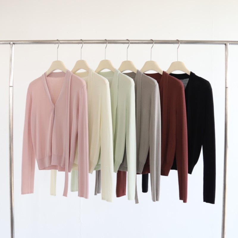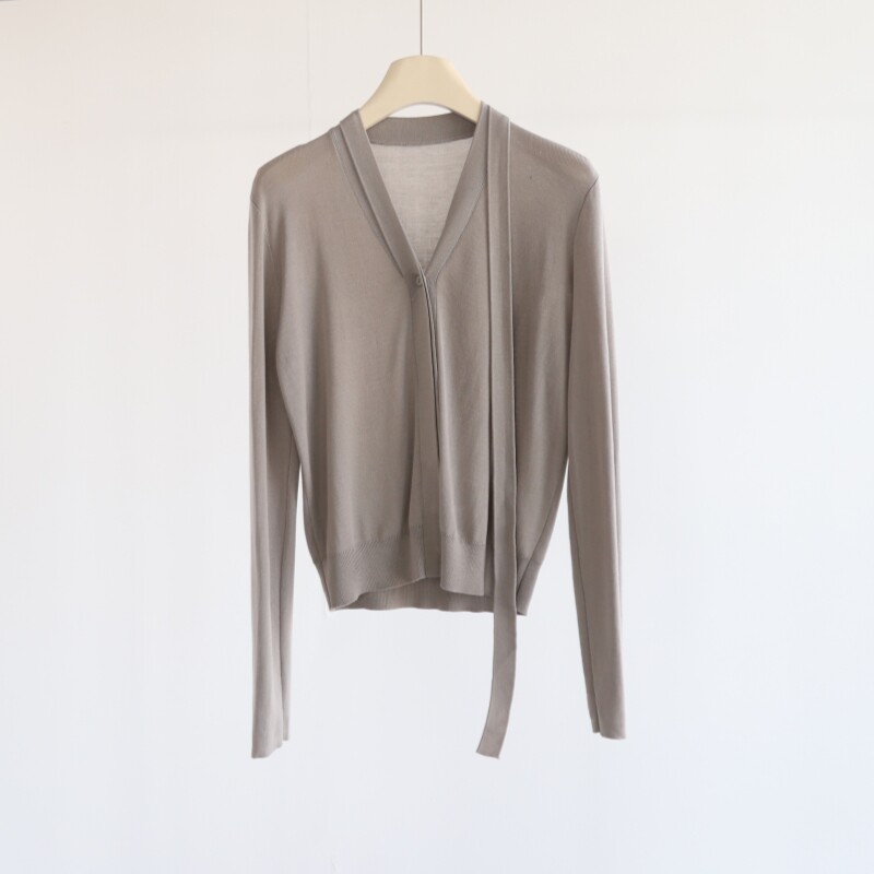 📚 白月光ins纯欲系氛围感飘带桑蚕丝莱赛尔针织开衫V领长袖外搭上衣