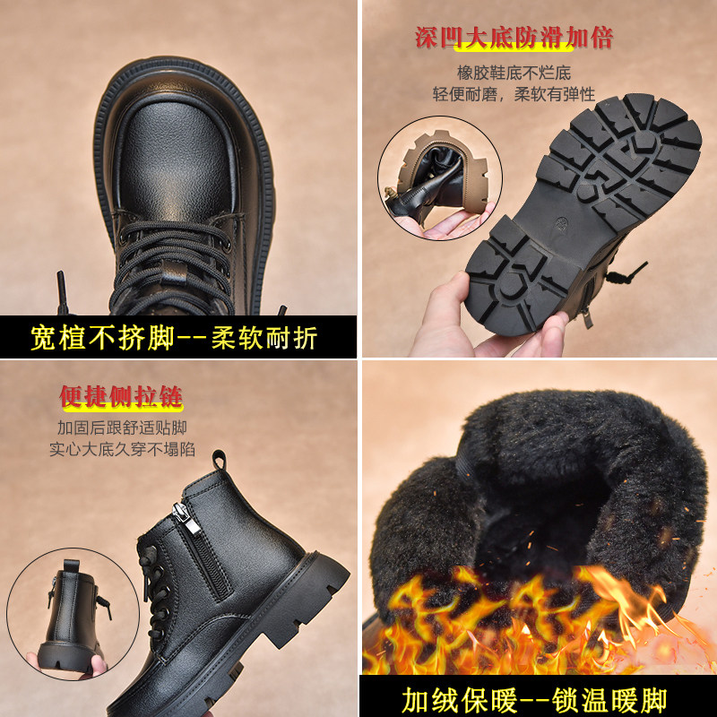 📚 儿童马丁靴2025年秋冬新款女童靴子皮鞋加绒二棉大童短靴男童冬季