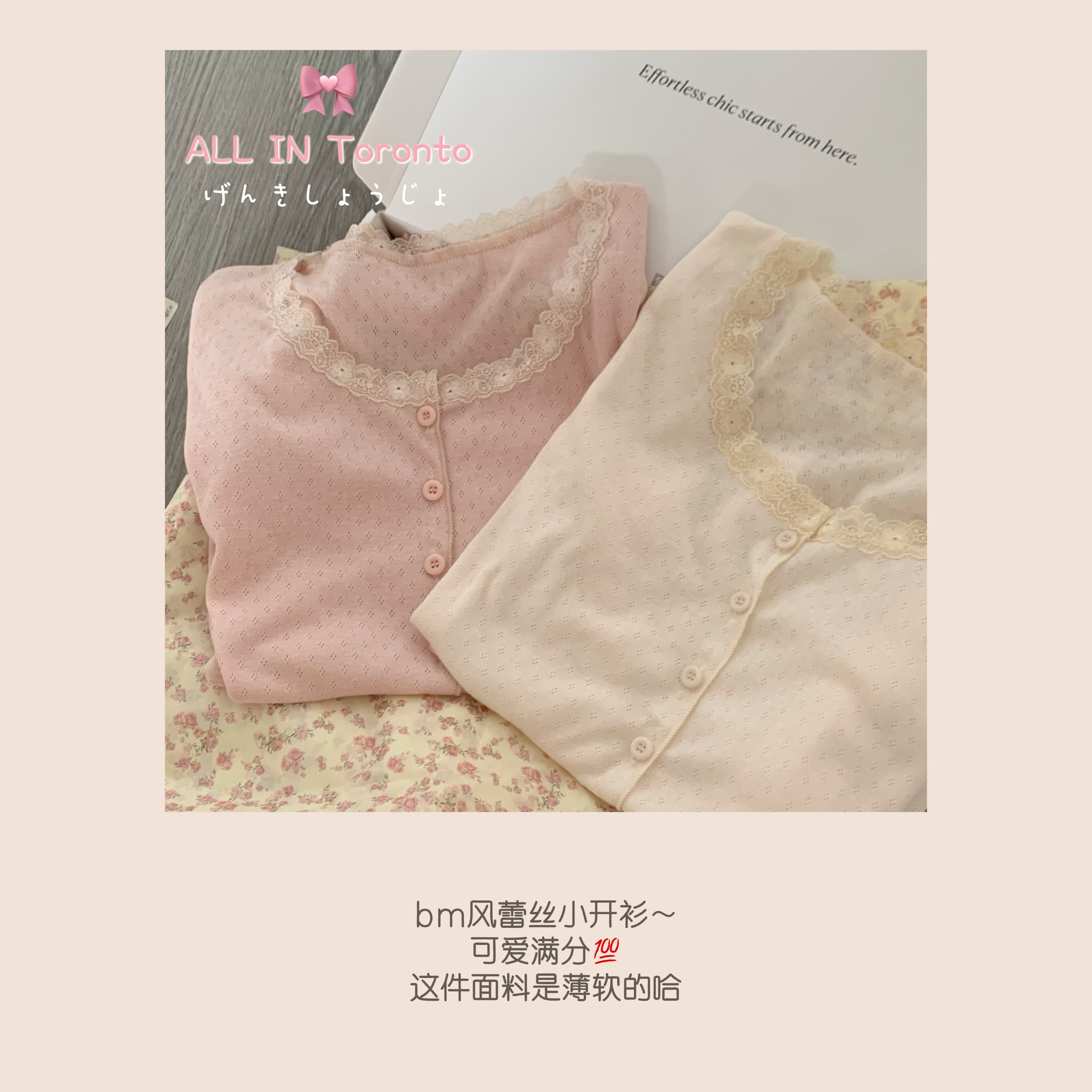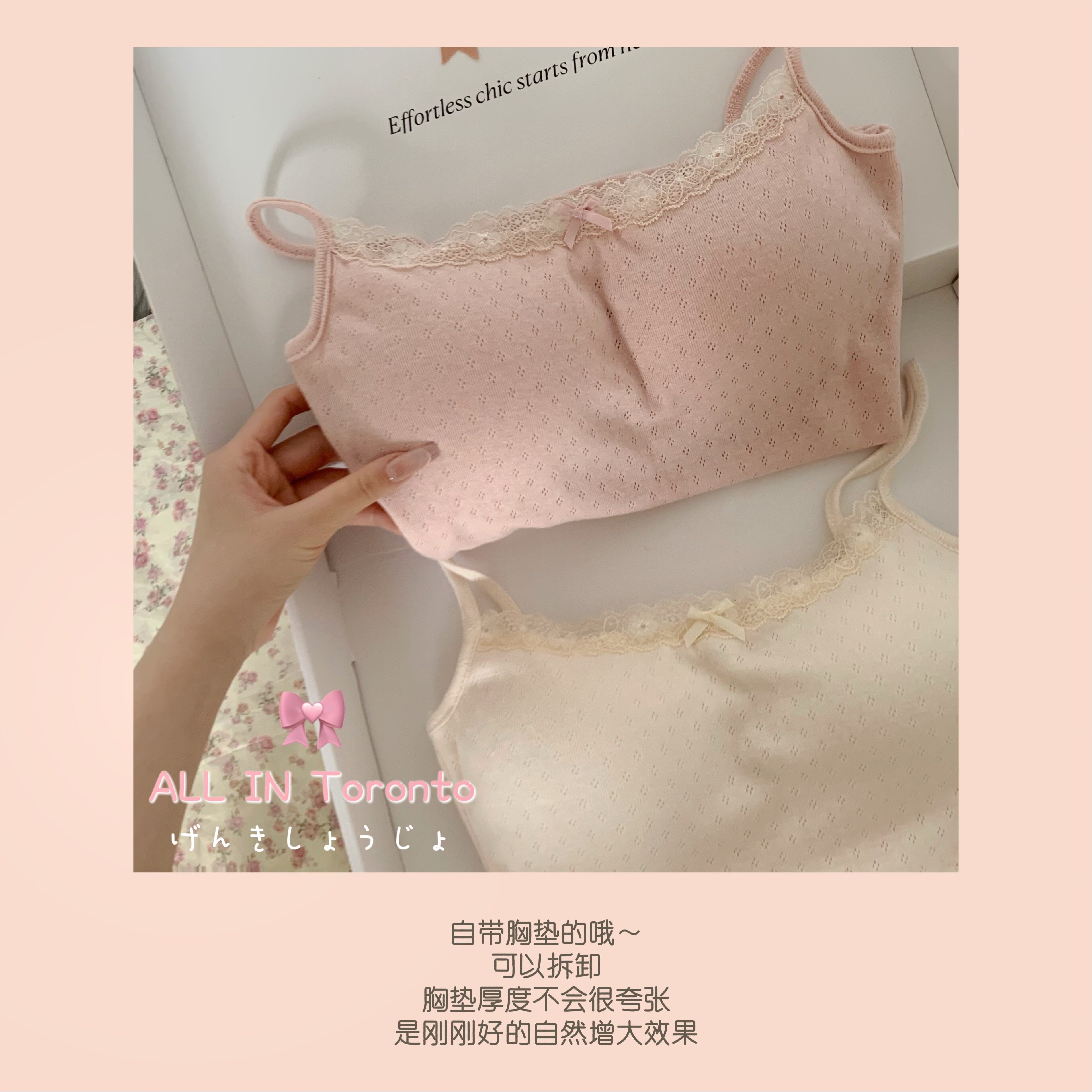 📚 ALLIN bm风蕾丝吊带开衫两件套甜美蝴蝶结上衣女胸垫背心内搭打底