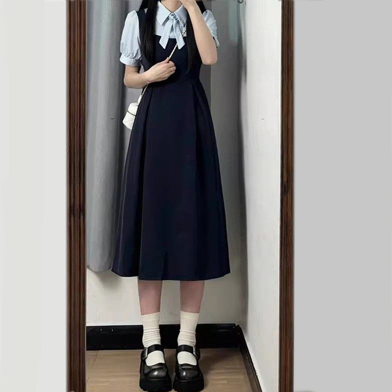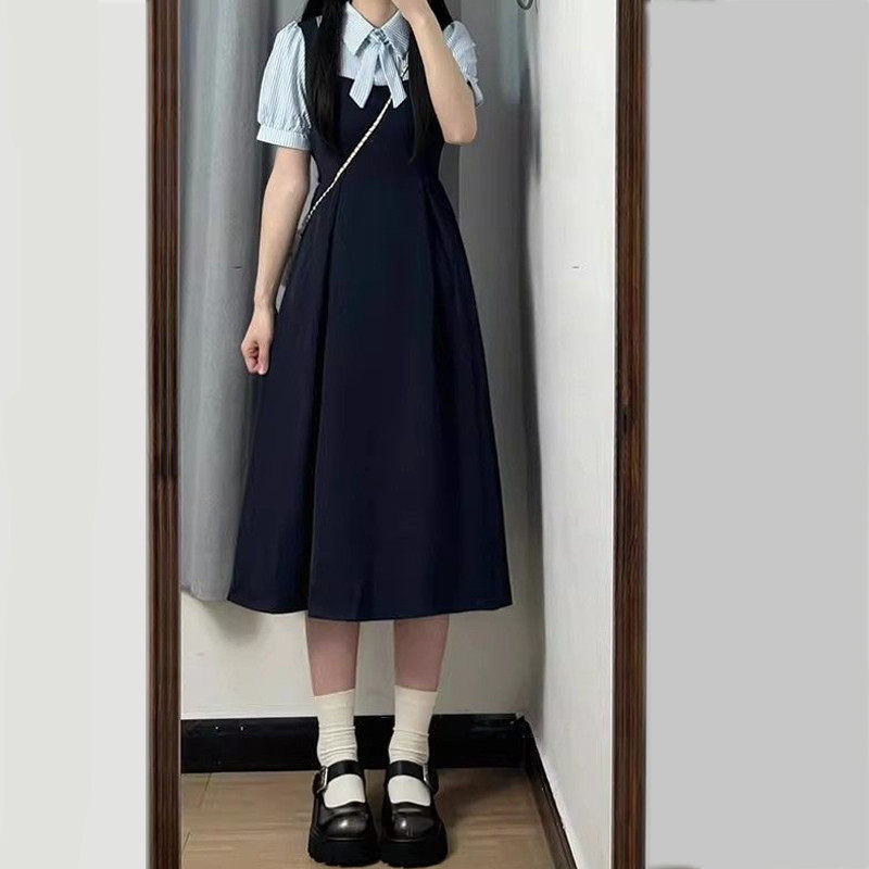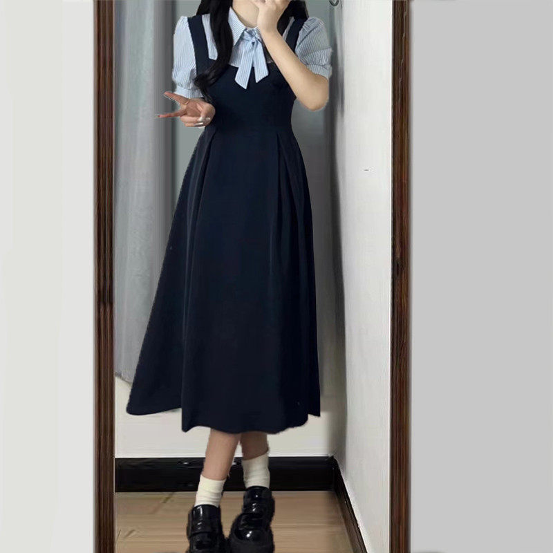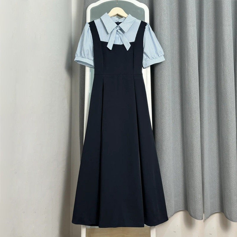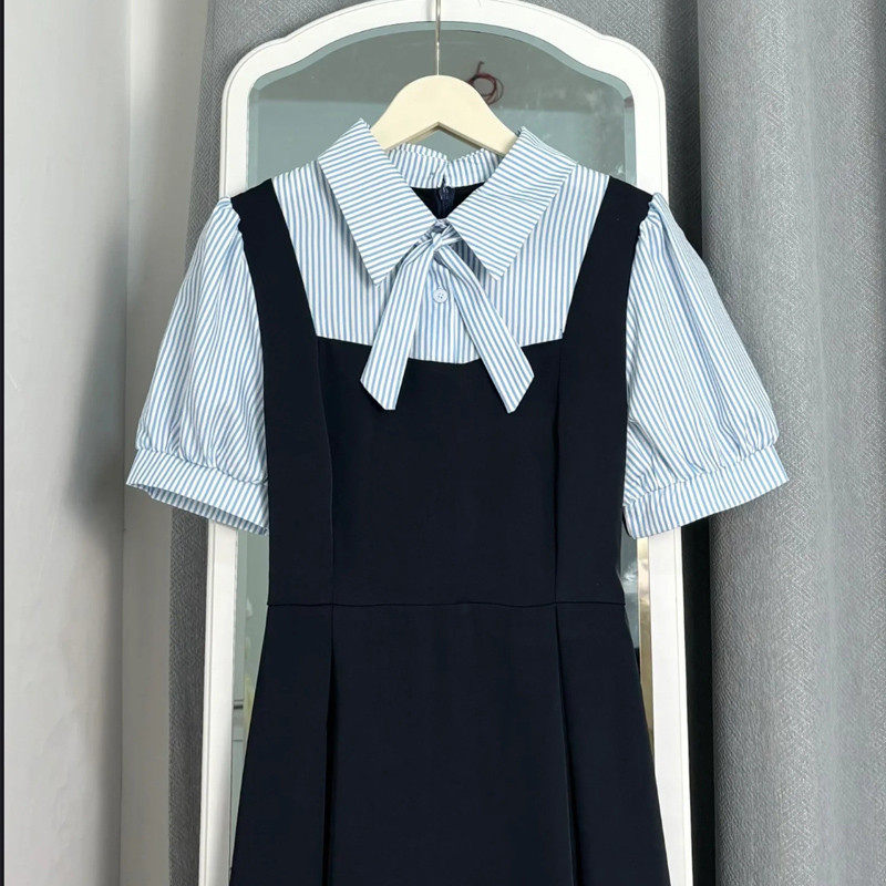 📚 法式学院风假两件女小个子收腰通勤教资面试条纹衬衫