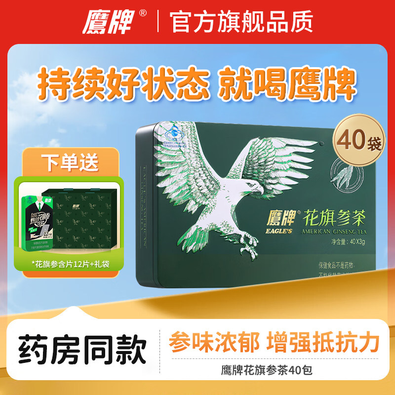 📚 爆款必抢】40包鹰牌花旗参茶增强免疫力西洋参茶颗粒人参皂苷送礼