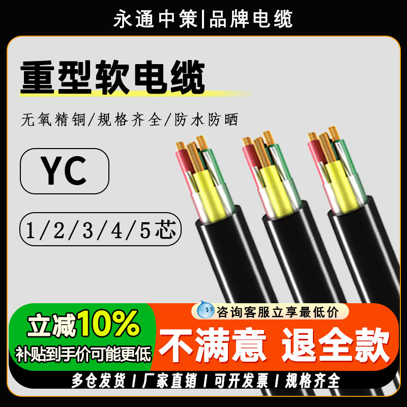 📚 永通中策YC橡胶电缆国标纯铜芯家用电线2/3/4/5芯1.5平方护套软线