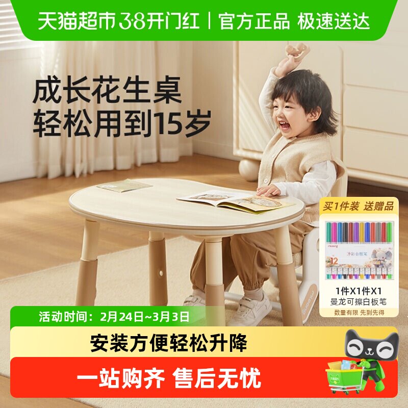 📚 曼龙花生桌Pro宝宝桌子儿童学习桌可升降调节游戏玩具桌椅子组合