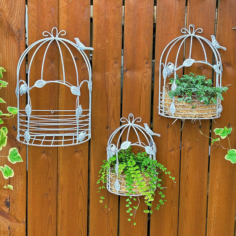 💥超值!套二壁挂铁艺小鸟笼,复古做旧白色半圆多肉架,让你的户外生活更添艺术气息🎉