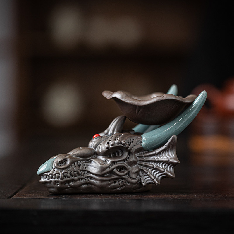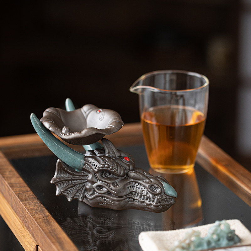 📚 生肖龙首陶瓷龙头摆件个性茶漏支架茶叶过滤器可养茶宠茶盘装饰品