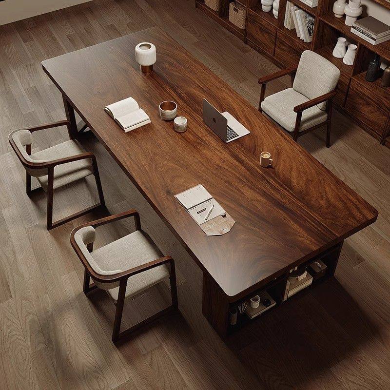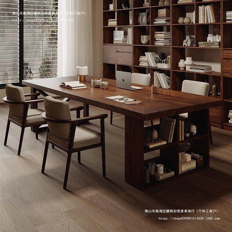 📚 南美胡桃木去客厅化大长书桌书柜一体家用全实木大板办公桌工作台