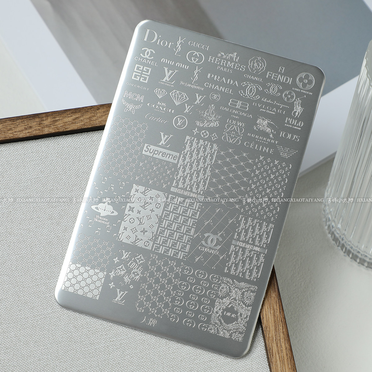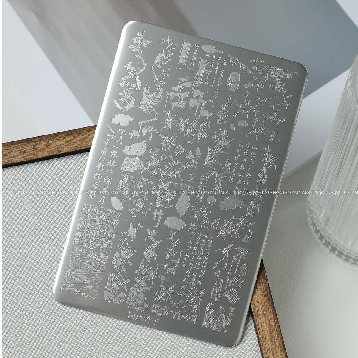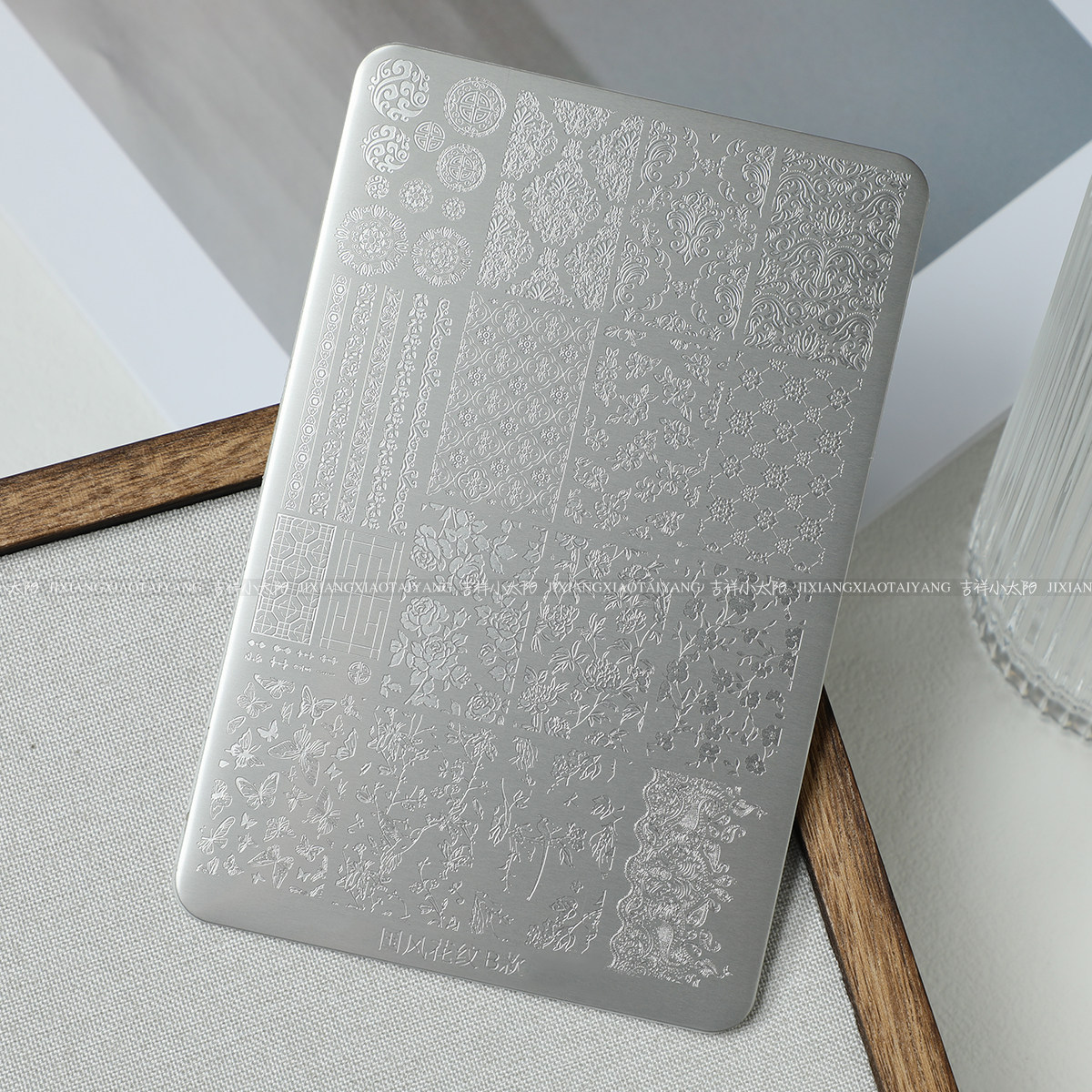 📚 转印钢板-美甲印花钢板工具格纹蕾丝花卉KT猫有刮板+背板9.5*14.5
