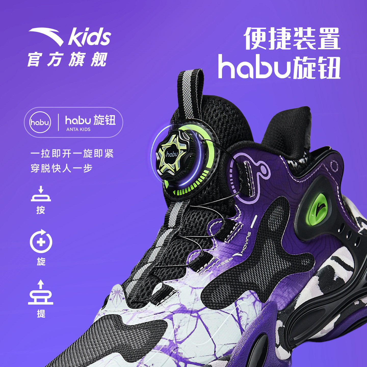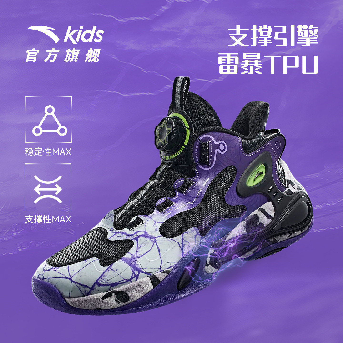 📚 安踏儿童雷暴篮球鞋春夏新款防滑高帮防护抗扭旋钮男大童运动童鞋