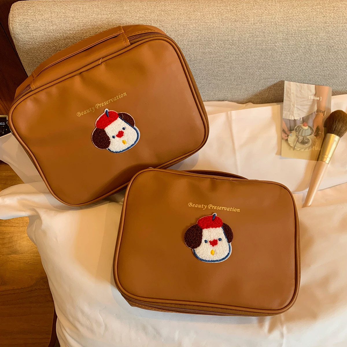 📚 卡通可爱小狗化妆包外出便携式化妆品收纳包大容量女士旅行洗漱包