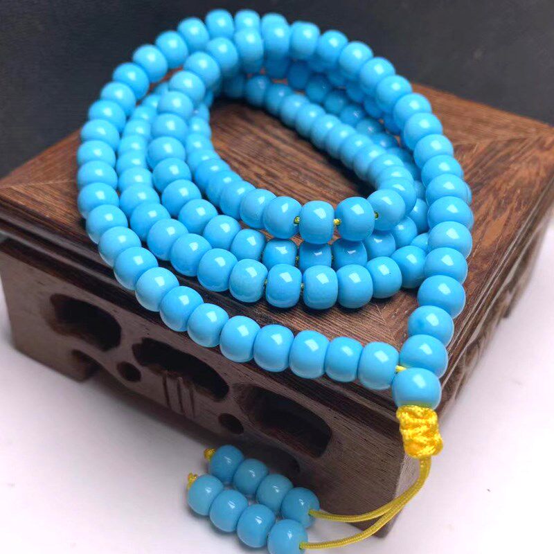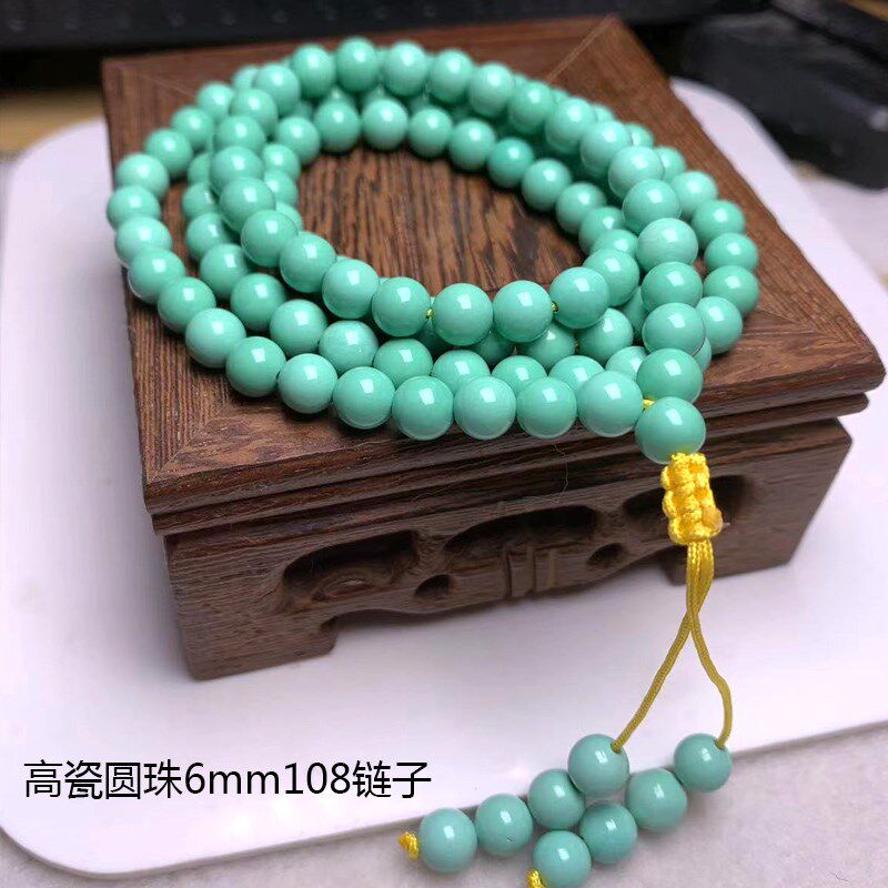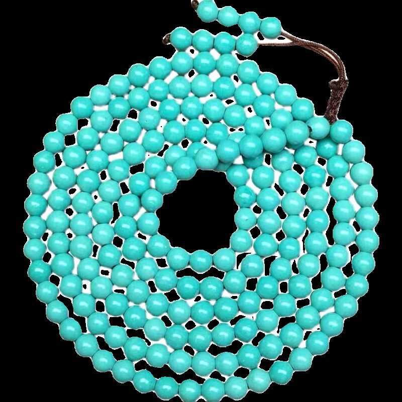 📚 天然原矿绿松石项链手链高瓷老型圆珠108多圈手串蓝绿色男女现货