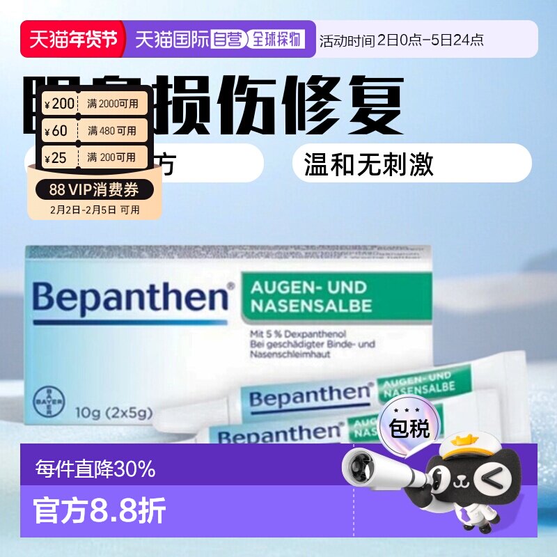 📚 德国拜耳Bepanthen贝乐欣眼角膜鼻粘膜损伤保湿修复膏10g