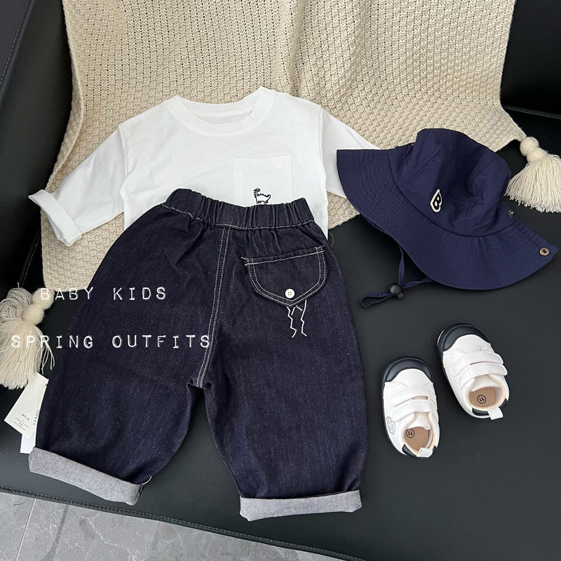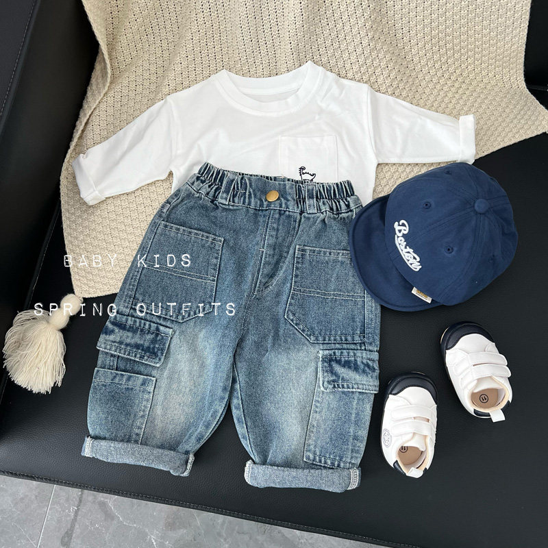 📚 男童上衣春季白色长袖T恤宝宝春装衣服婴幼儿百搭打底衫体恤衫潮