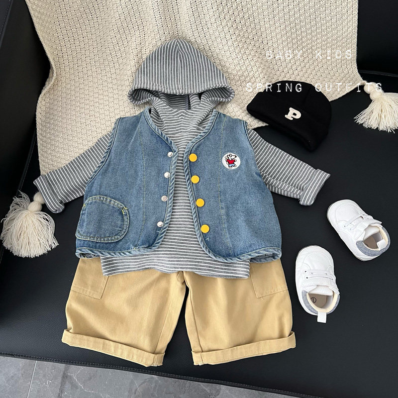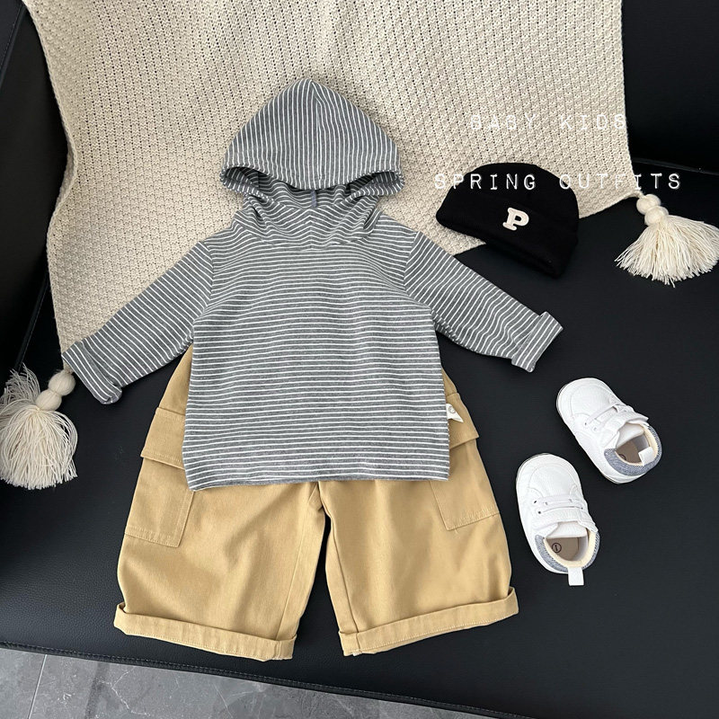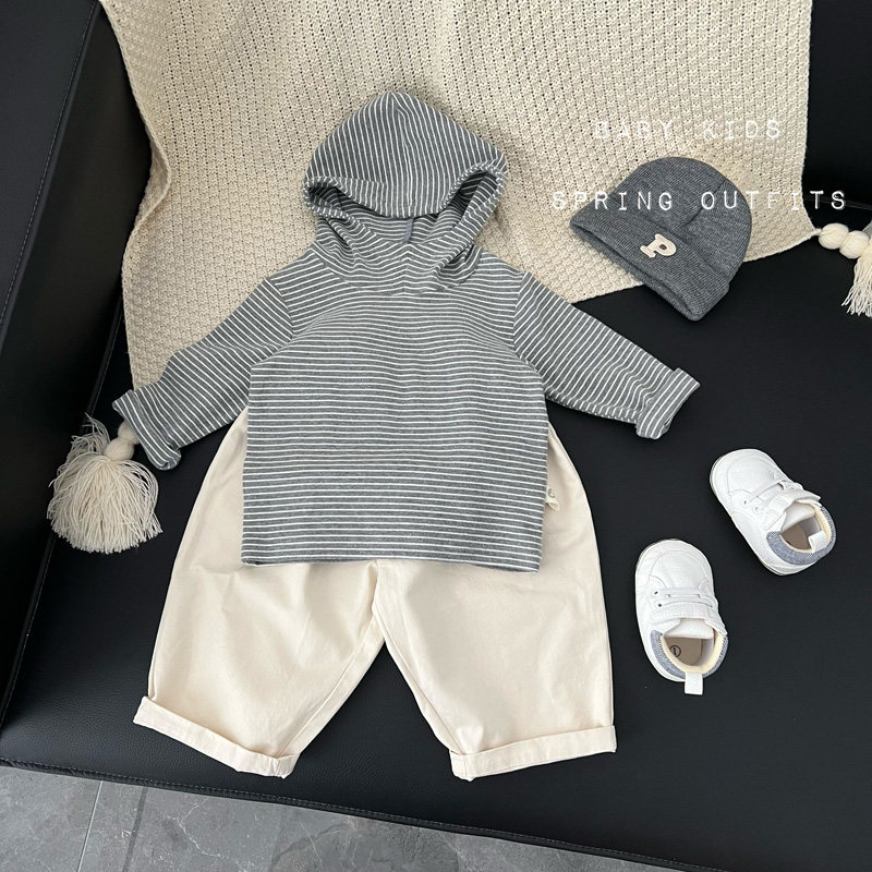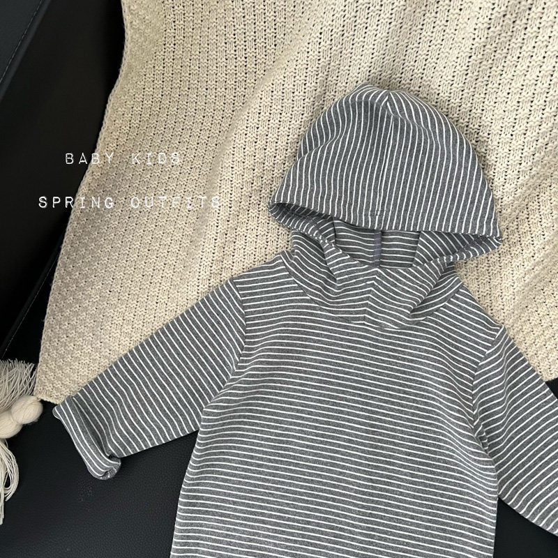 📚 ins男女宝宝春装衣服婴幼儿春秋百搭连帽卫衣外出条纹打底衫T恤潮