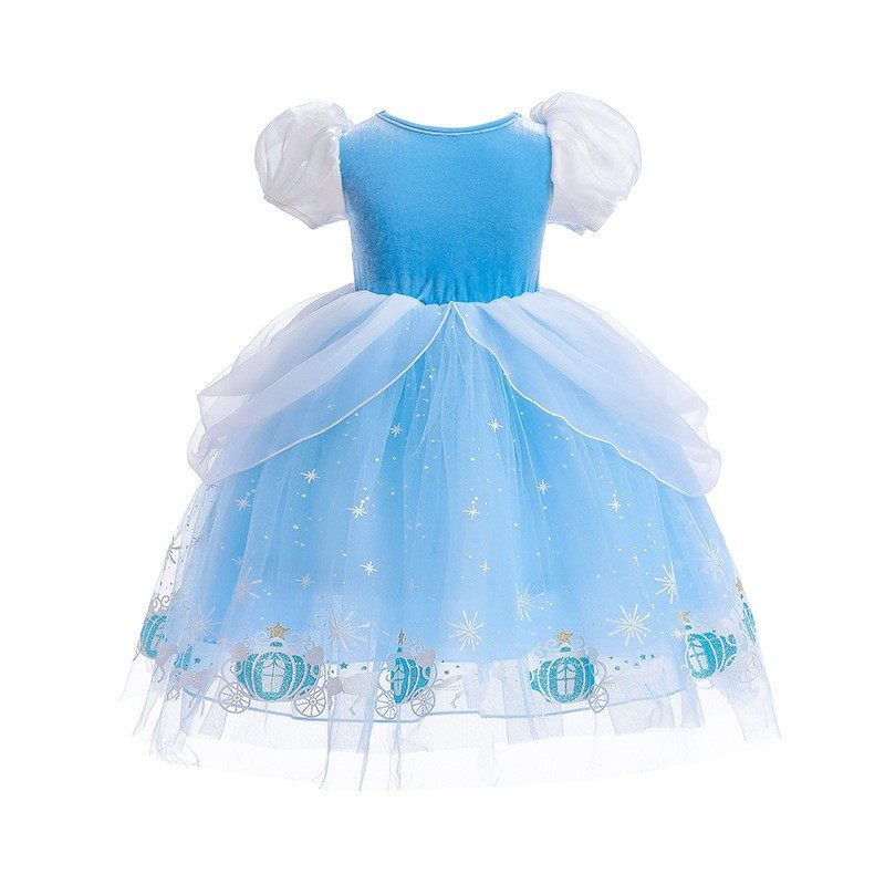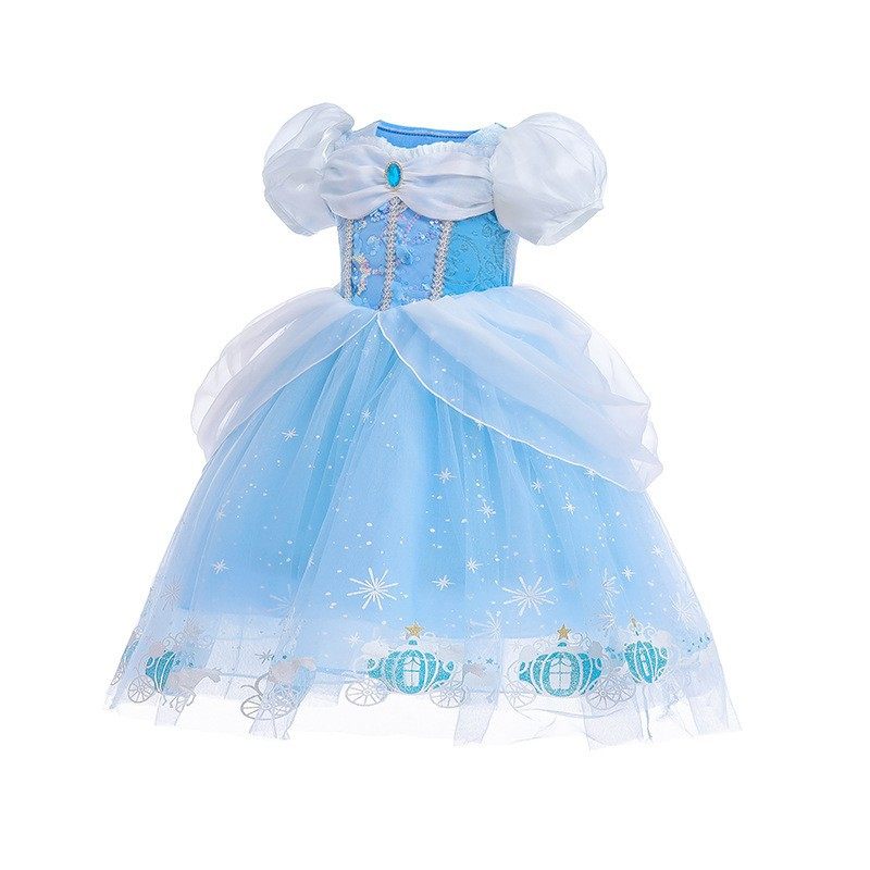 📚 冰雪奇缘艾莎公主裙女童泡泡袖印马车灰姑娘连衣裙cos演出服袖套