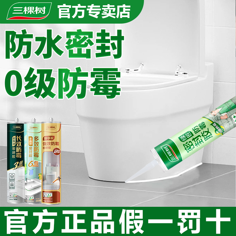📚 三棵树玻璃胶门窗厨卫专用胶防水防霉马桶透明瓷白密封胶硅酮胶