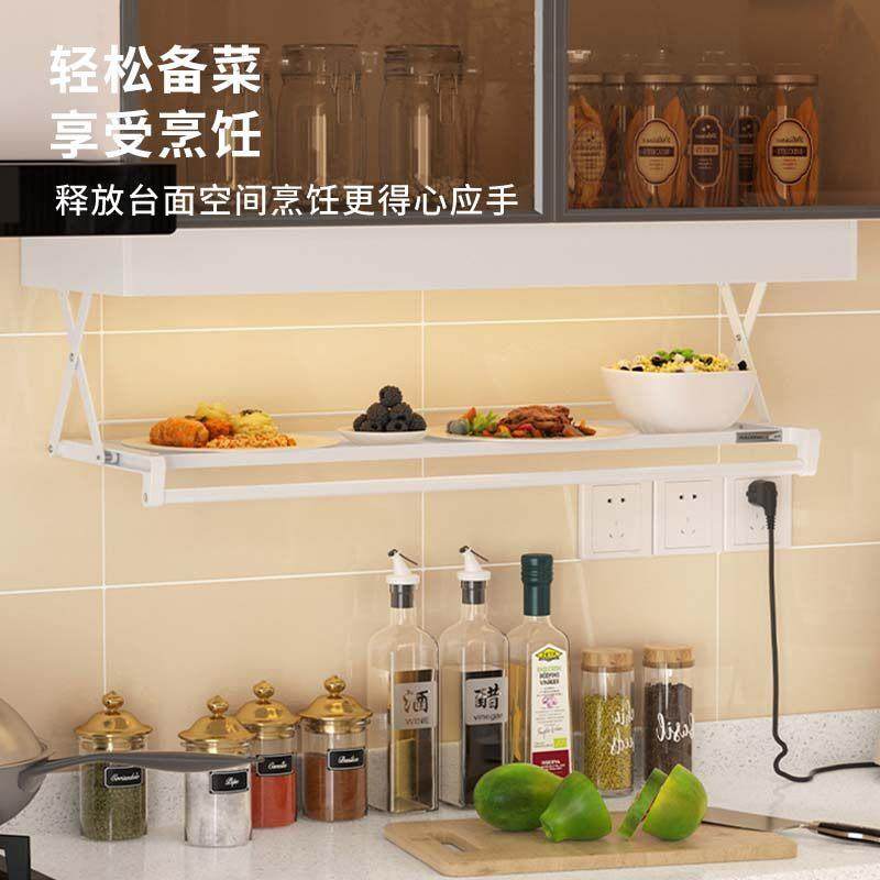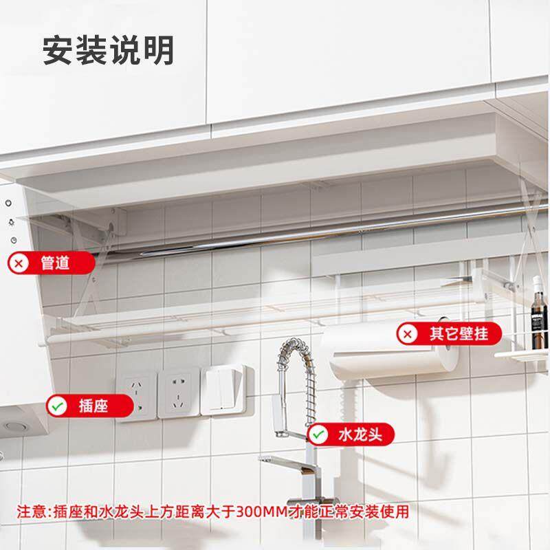 📚 云物生活厨房壁挂吊柜下拉拓展置物架多功能碗碟锅布可折叠收纳层