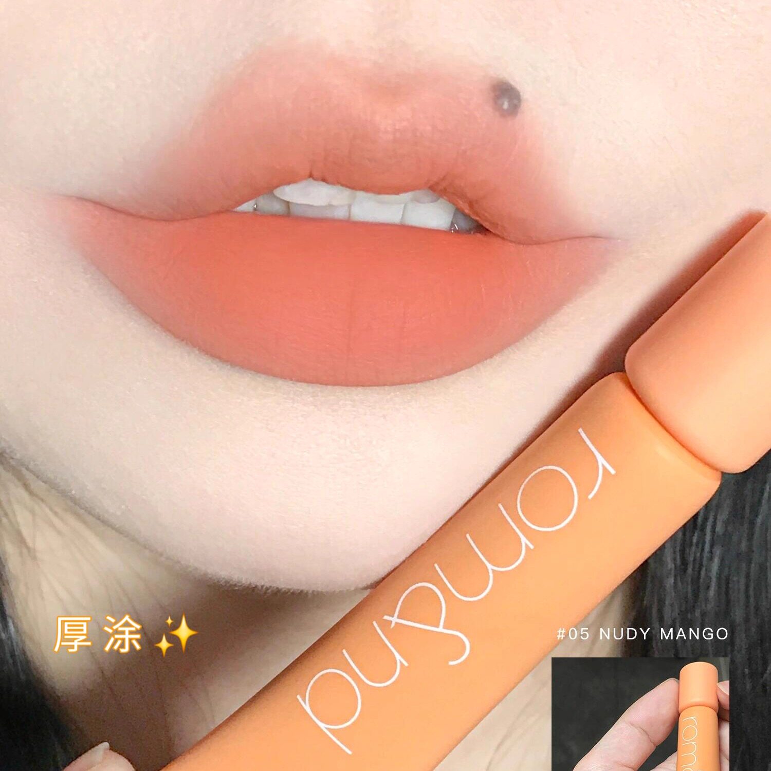 📚 南韩新色 甜糯芒果巨显白!Romand 05云柔哑光雾面唇泥显白亮橘色