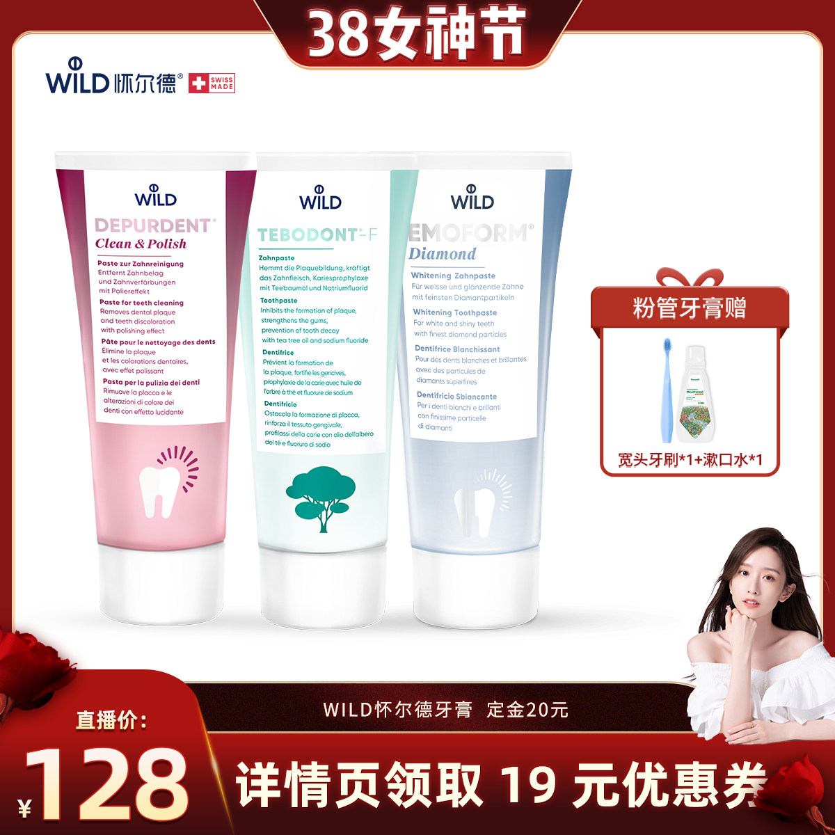 📚 【晁然直播间】Wild怀尔德去渍钻石茶树油牙膏深层清洁瑞士进口