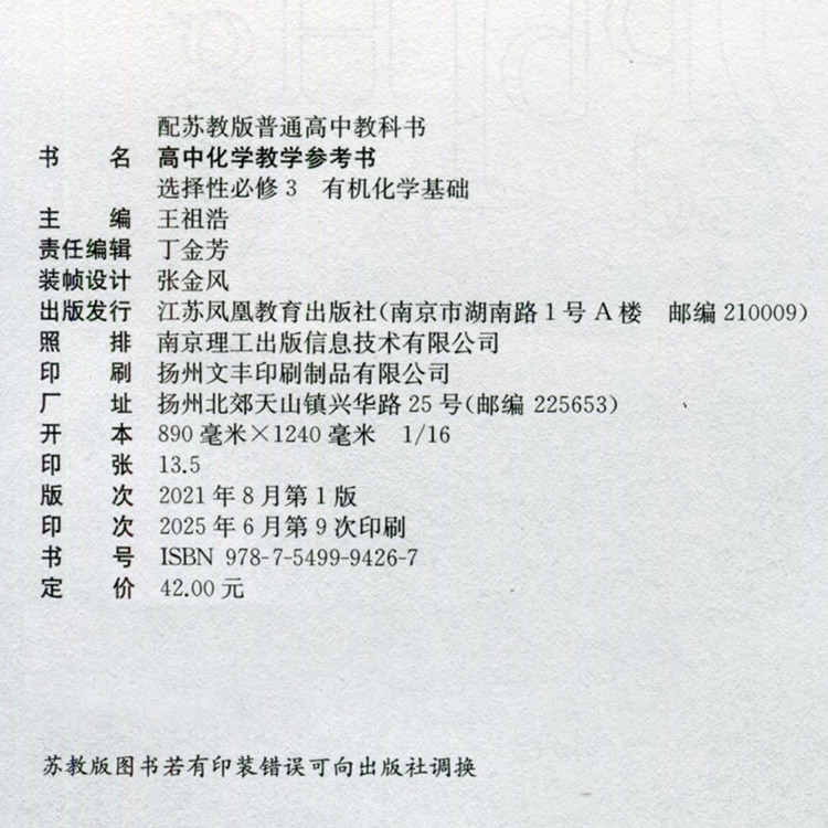 📚 2025年 高中化学教学参考书 选择性必修3 有机化学基础 配苏教版普通高中教科书 选修三 江苏凤凰教育出版社
