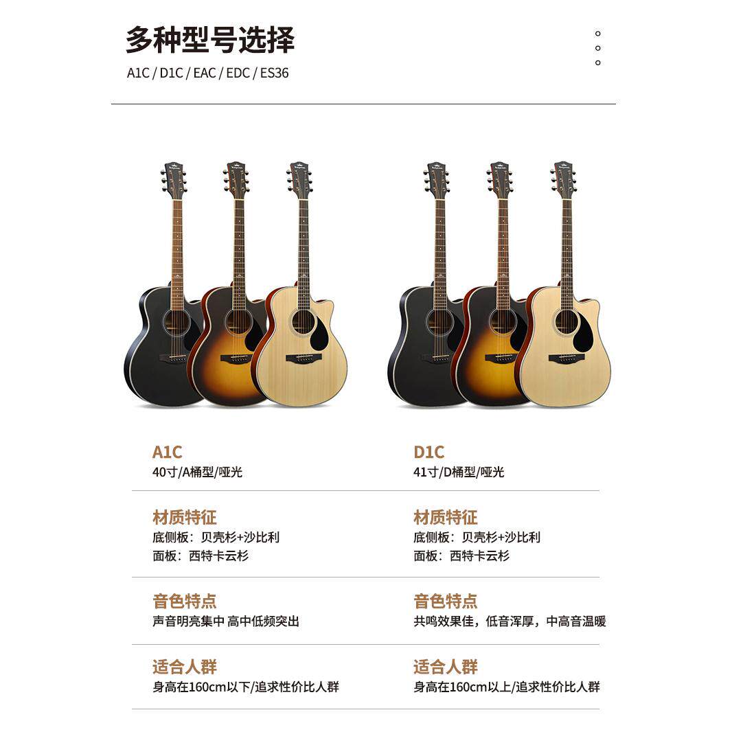 📚 白熊音乐kepma卡马卡普马入门 吉他EDC民谣初学者男女学生d1c/a1c