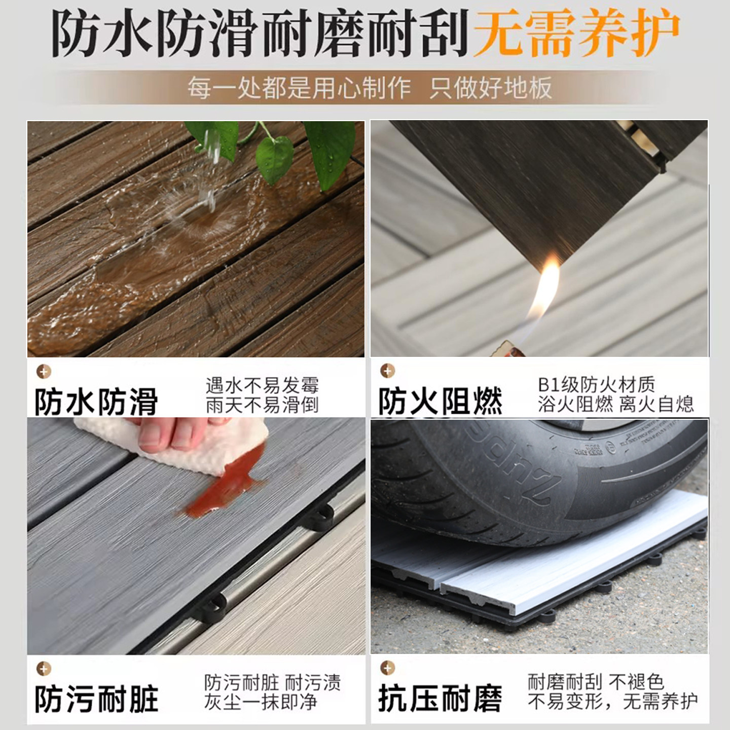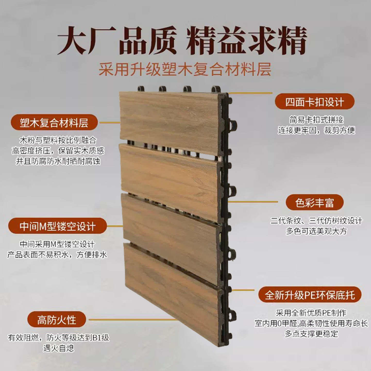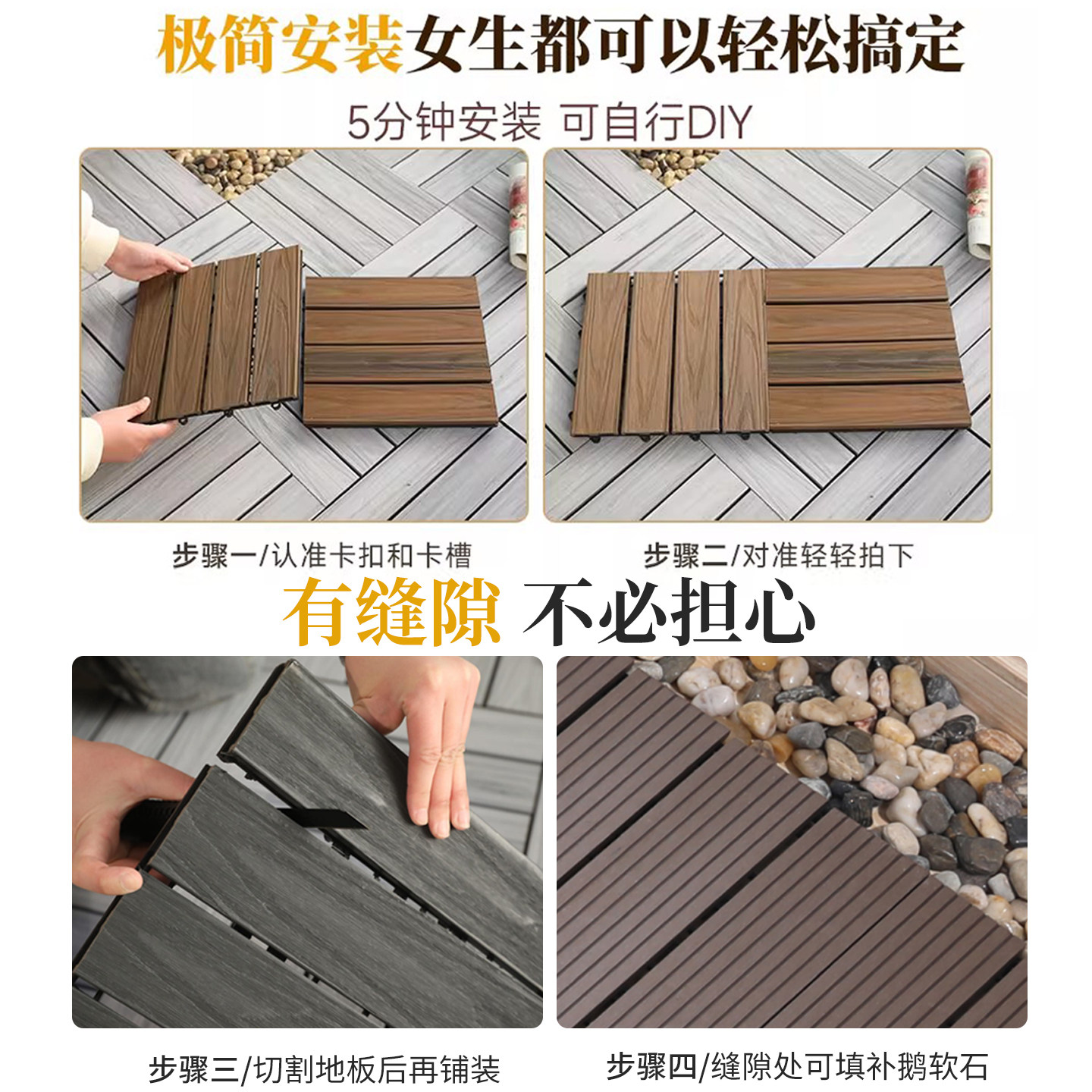 📚 户外共挤塑木地板室外阳台拼接自铺防腐木塑庭院露台花园地面铺设